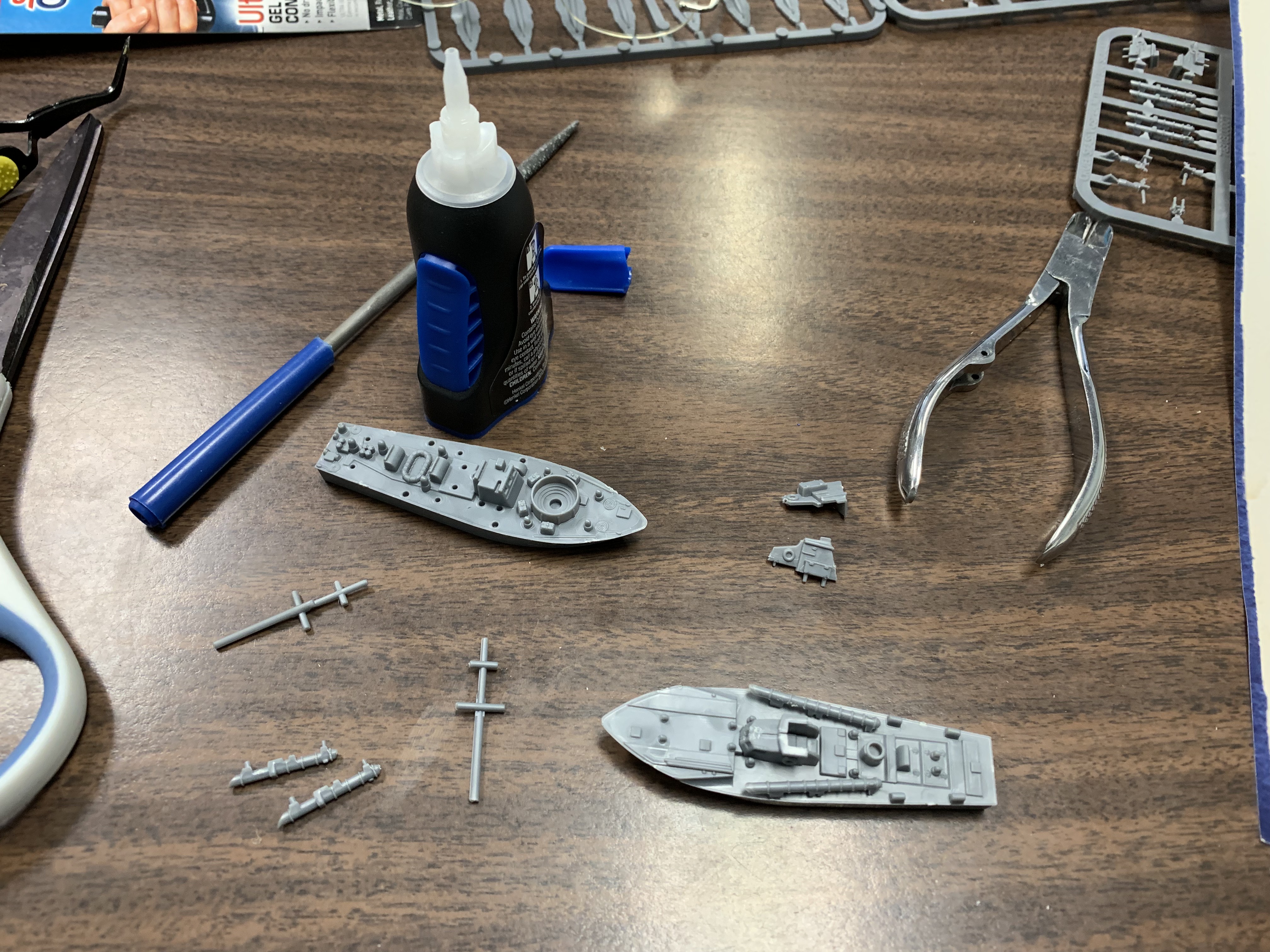 The scale for the game is 1/300 for the smaller ships and for larger destroyers, and such 1/350, tho such ‘monsters’ are in theory supposed to be rare on the tabletop as the action is tuned for really torpedo boats. The reason for the scale selection according to the author is they want to have the ability to have crew visible, they want to be able to actually see the guns. For what they delivered yes there are crew, but MGs are not found on the models. The 20mm, 37s and so on are there and they do look nice. Kits go together fairly well tho the instructions are less than straight forward. I had to consult various sources, pictures on the box or on the net to make sure things were going in the right place. In some cases you have the possibility of switching out one particular gun for a different type or one with more barrels. The kits generally allow you to directly model that switch. On the table top at several feet away telling the difference between a twin 20 or a quad 20 is pretty hard just based on the model itself.