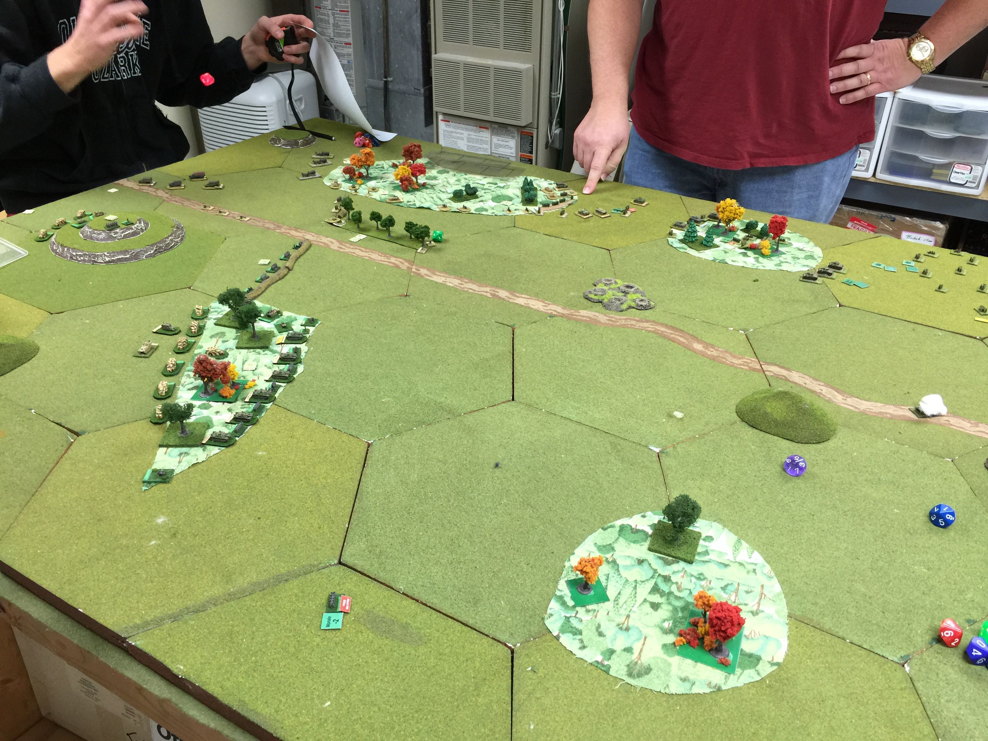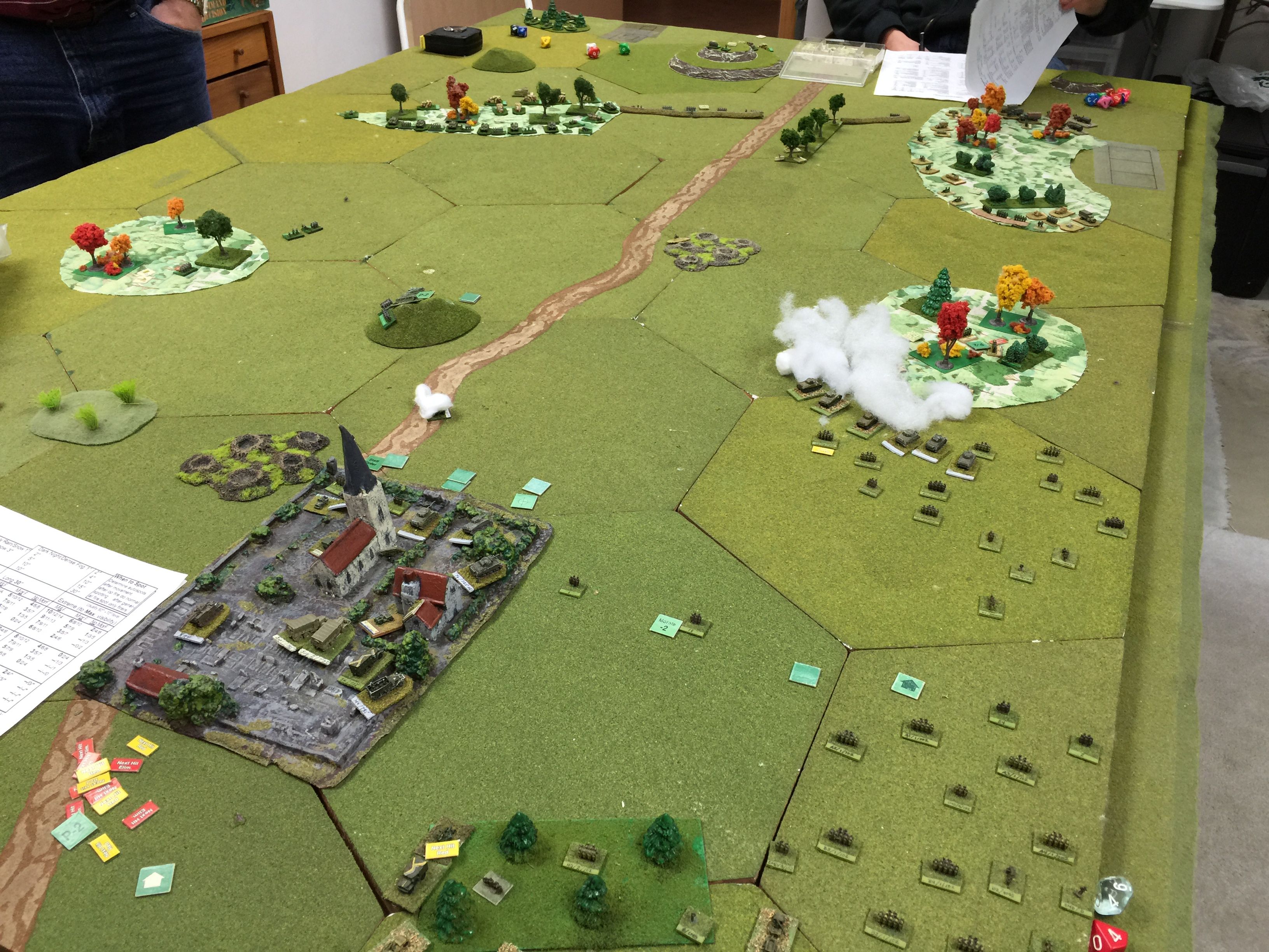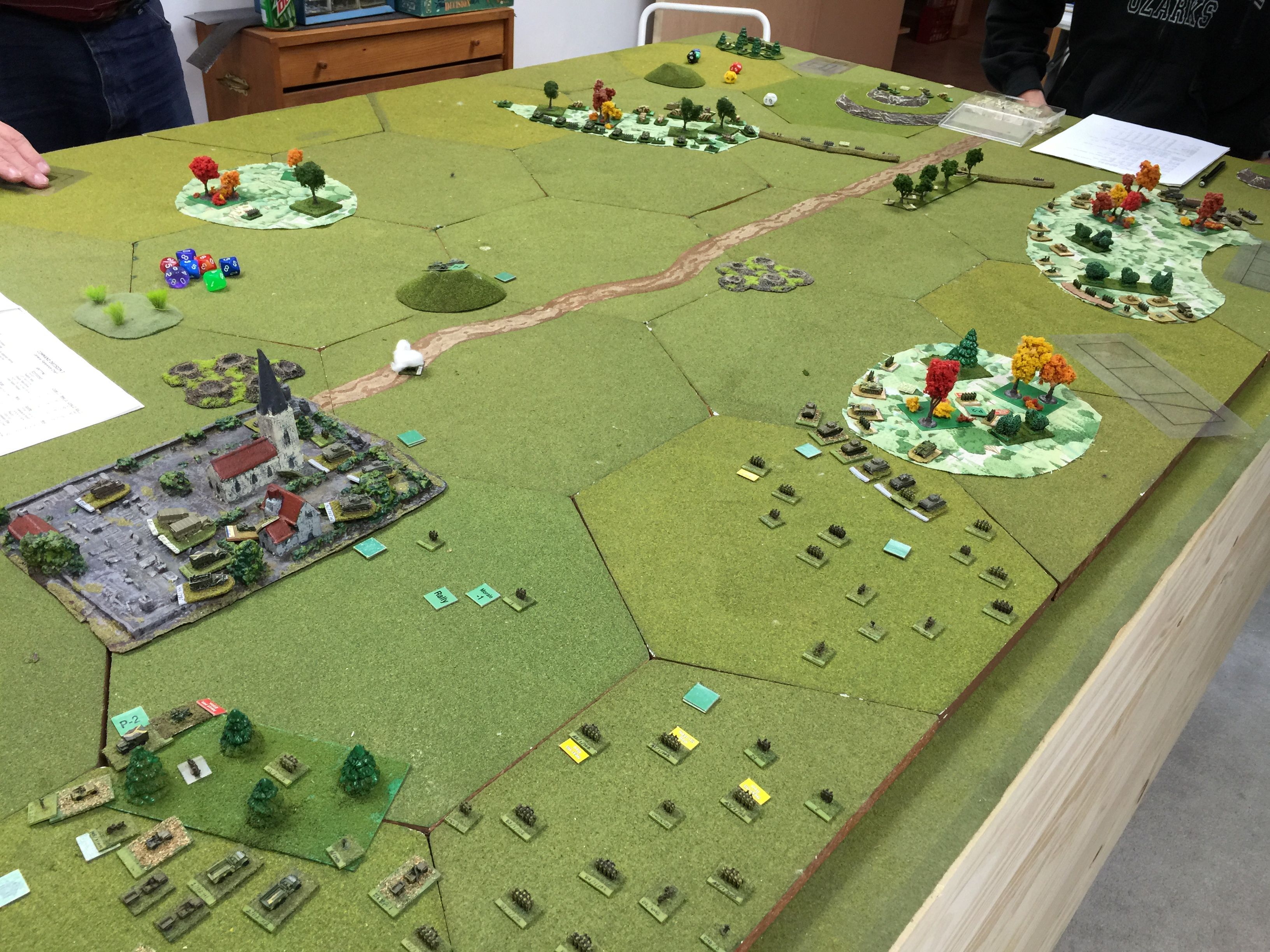 This is the view from our end of the table and the identified route of our offensive. Chuck and I figured we’d pick one side of the road and push away. We liked the shorter distances between the two woods on this right side and as Chuck put it, “looks to be more tank friendly.”