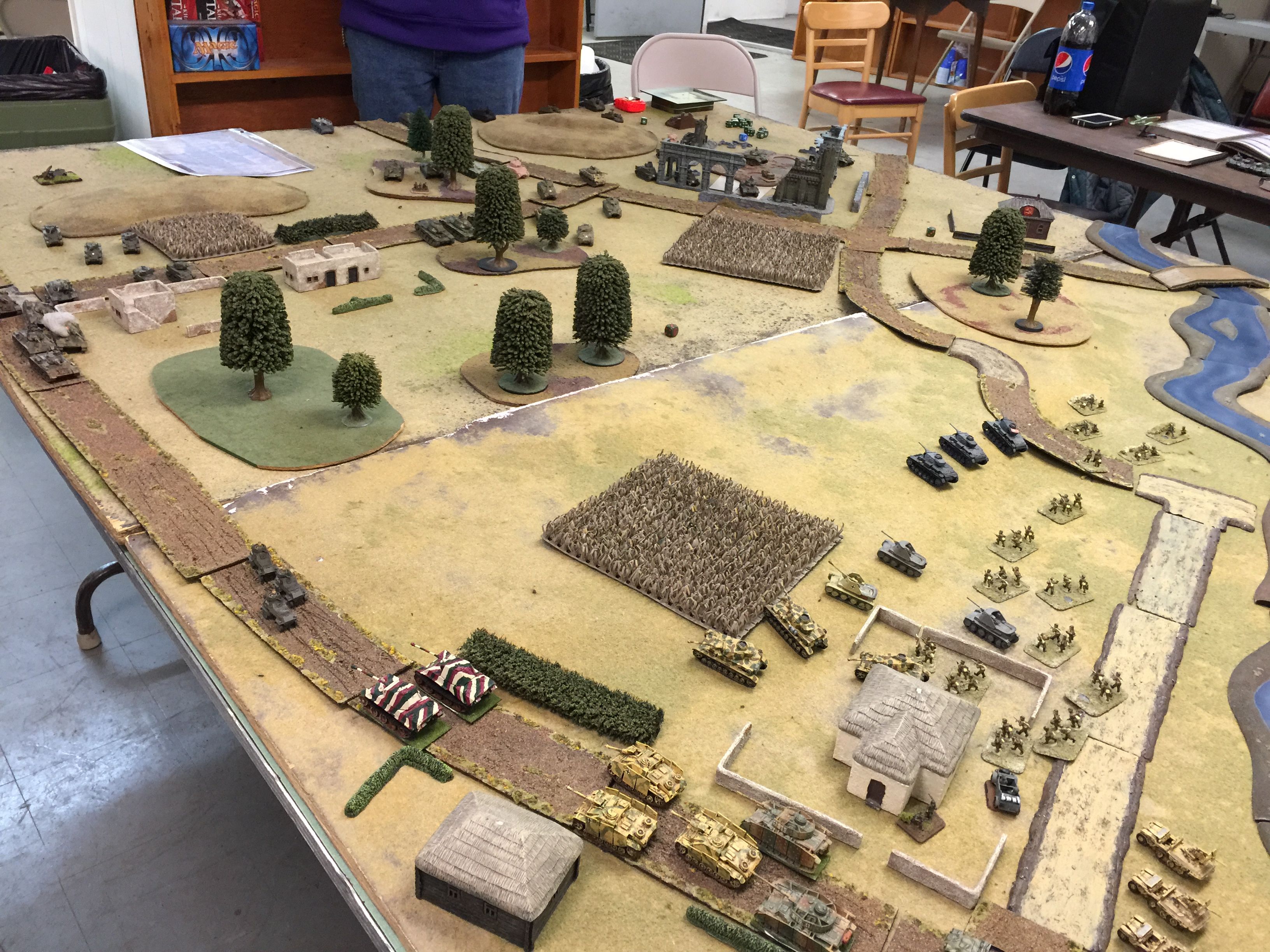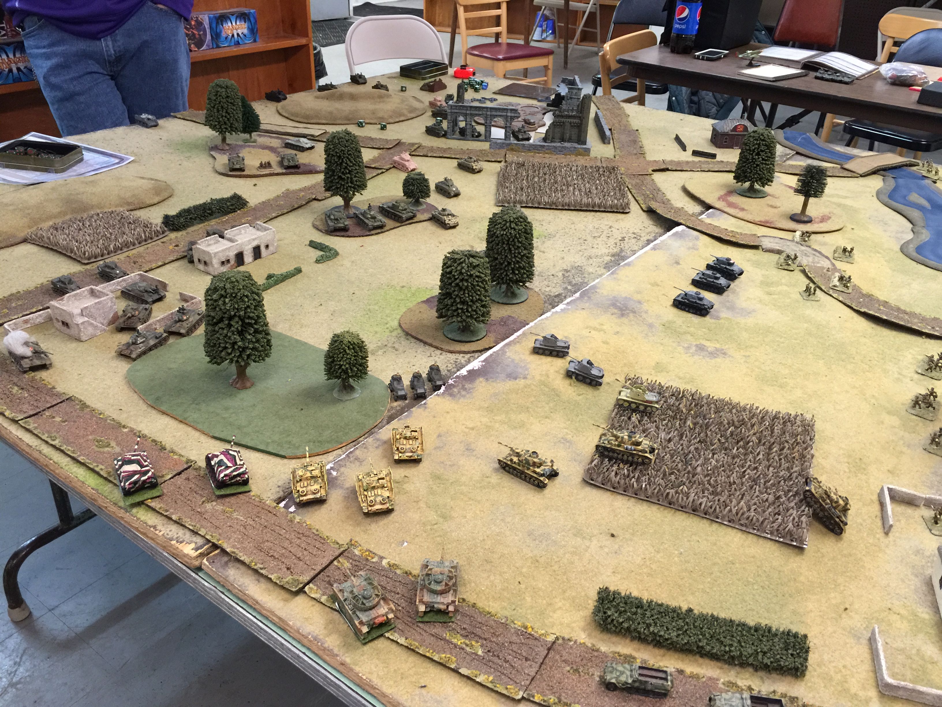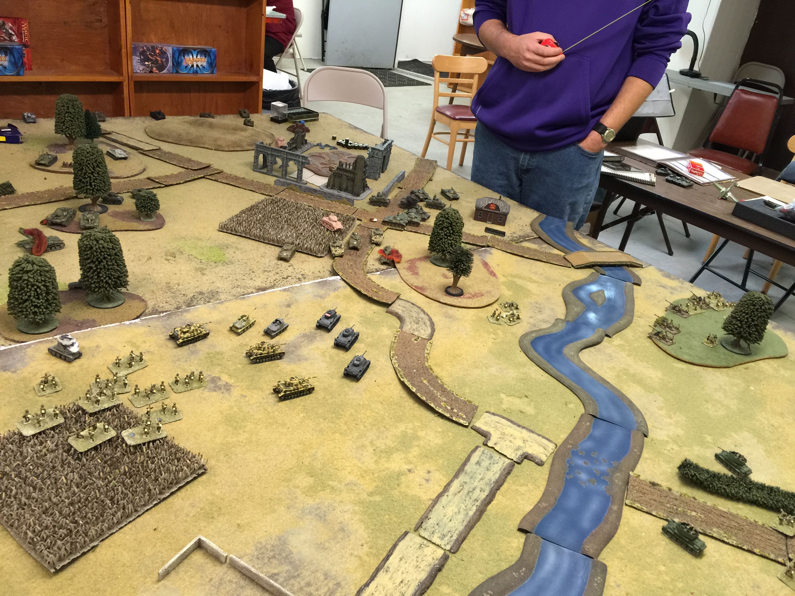A view from the Russian/American side. Chuck had a company of KV85s to square up against the Panthers. I was looking forward to this part of the action in particular. Between the Russian T34s, KV85s, and SU85s it created our own Tanksgiving.