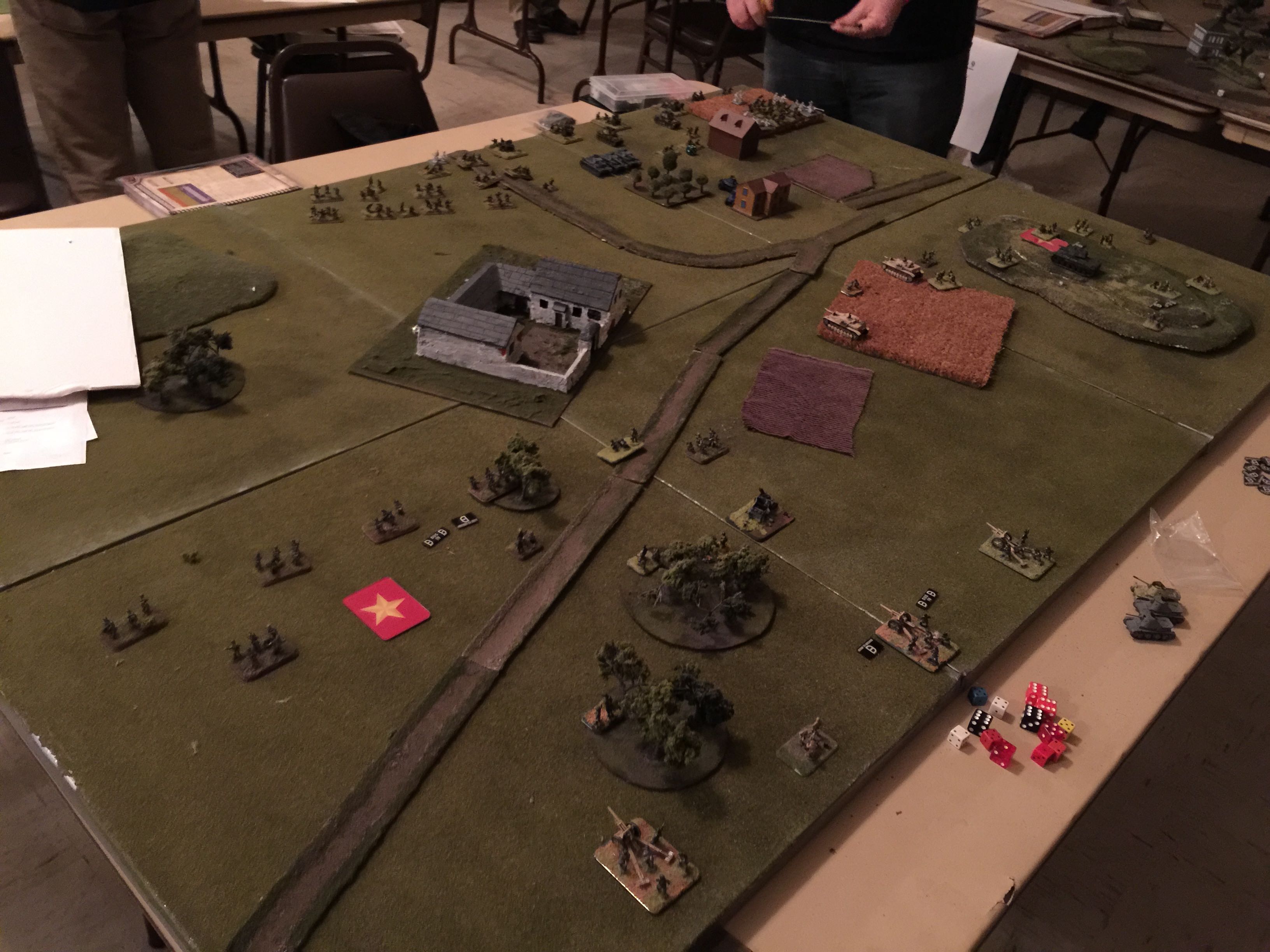 With time running down both Chuck and I tried to score that one set of hits which would result in a destroyed platoon. Neither of us were successful and I couldn’t quite get to a point where I could get enough whittled down were a rush towards an objective would make sense.