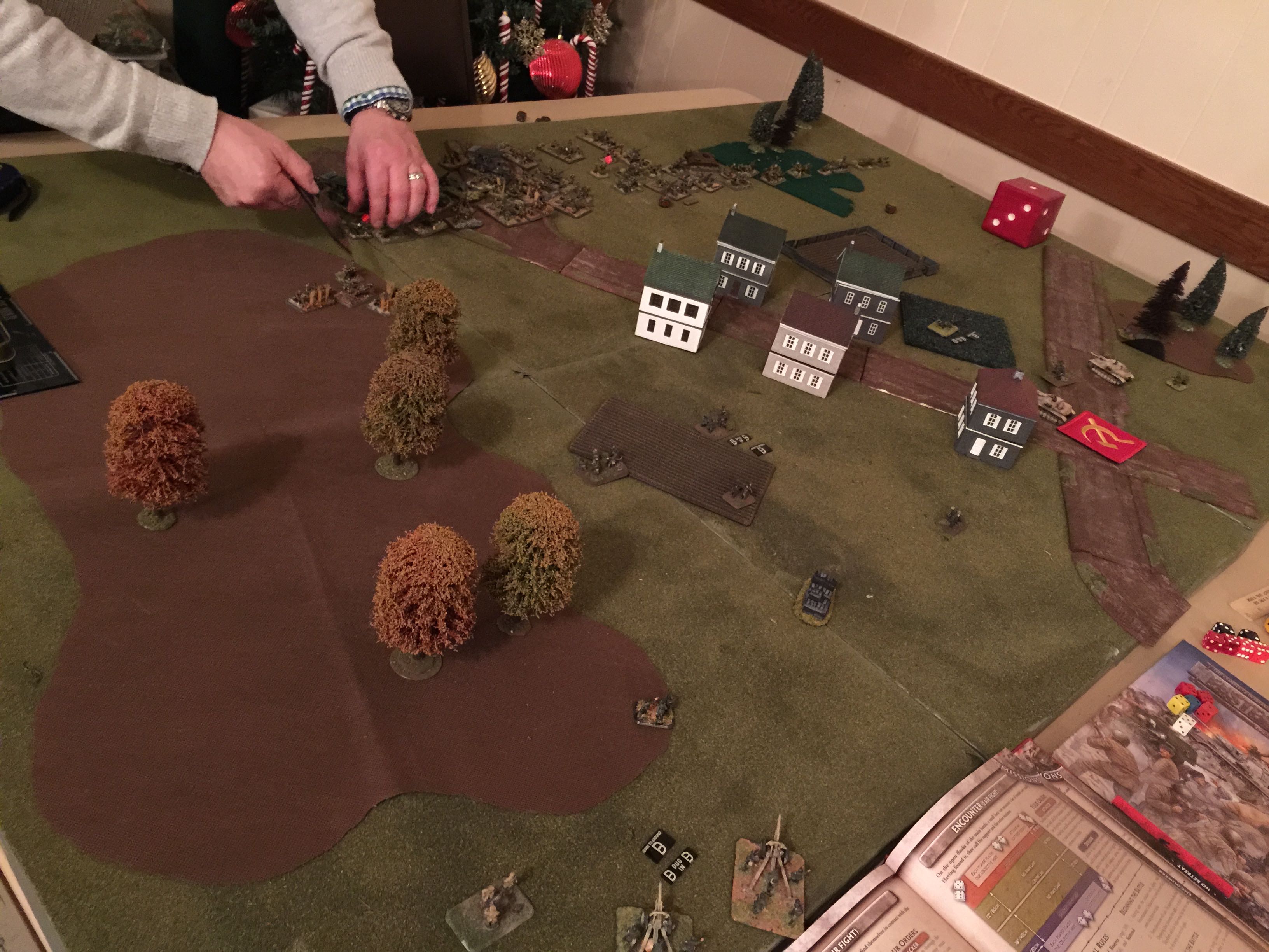 Closer in the Americans that were in the half tracks, immediately bailed out and ran through the forest to attempt to assault through my lines. It was some pretty high drama and I was able to put on 5 hits and turn them back.