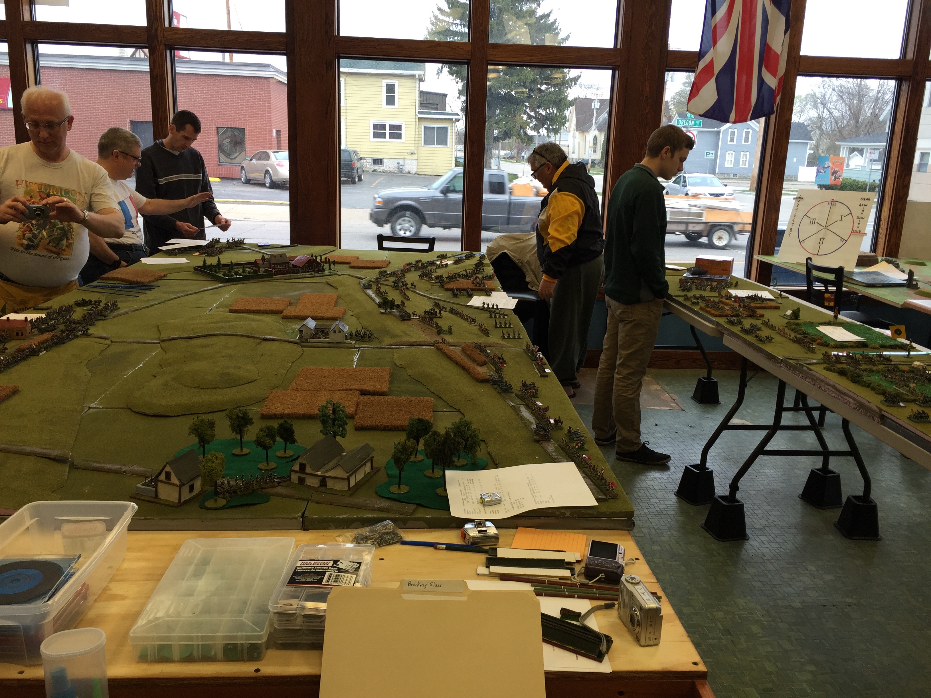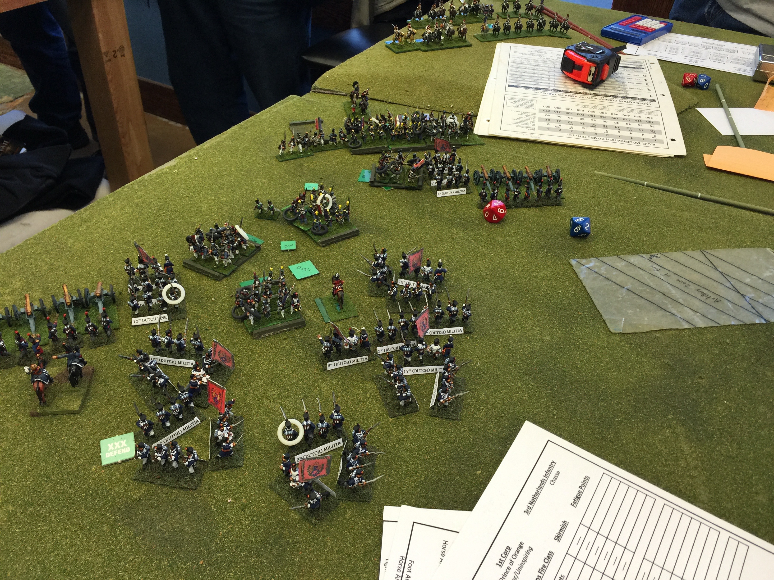 Those of us coming in from Minnesota, arrived on Friday afternoon. The locals had already gotten the table pretty much setup. Next was the unboxing and organizing of all the armies we would be controlling. Across the Brits, French, Dutch/Belgians, and Prussians we needed and thankfully had lots of hands.