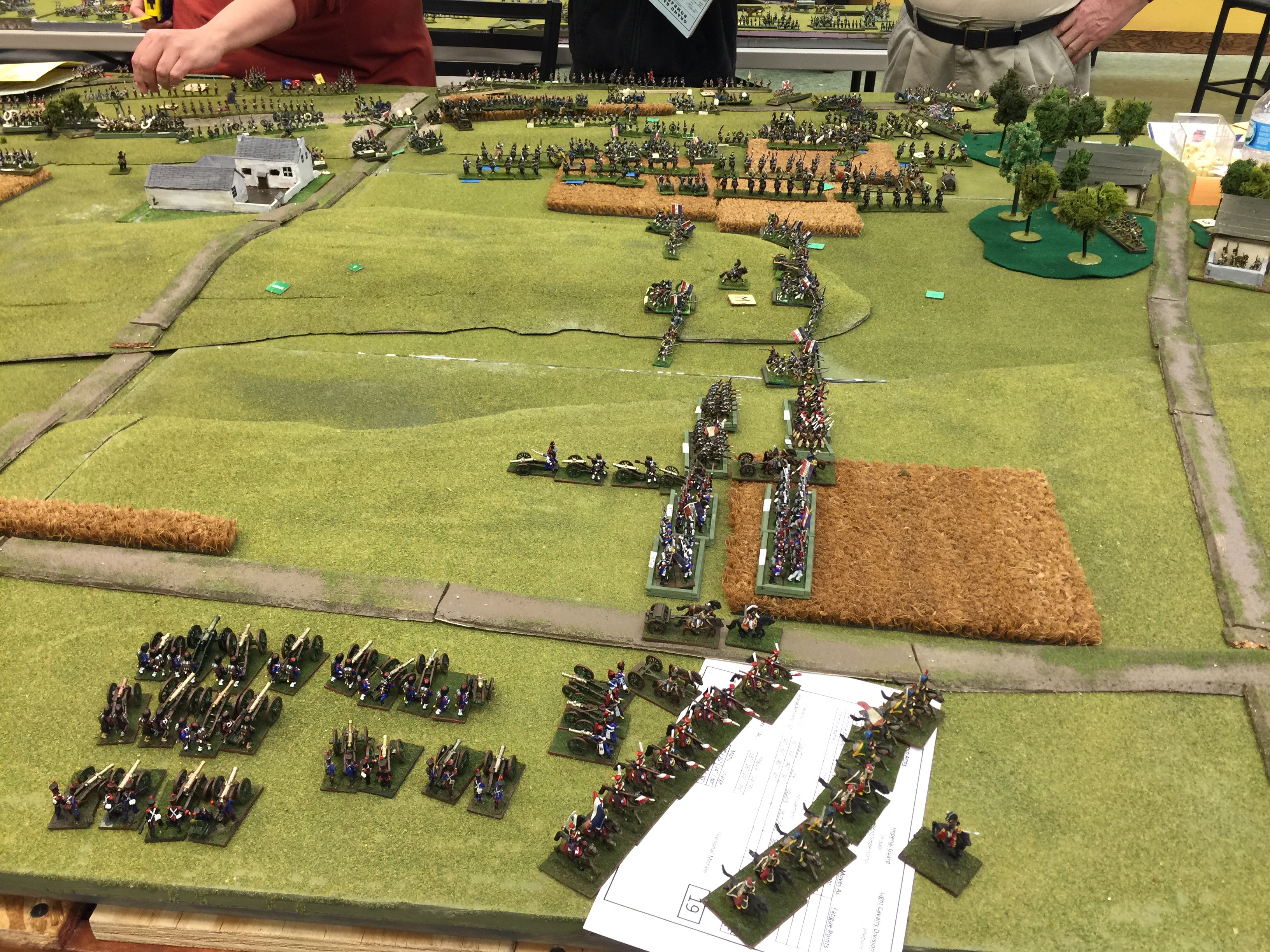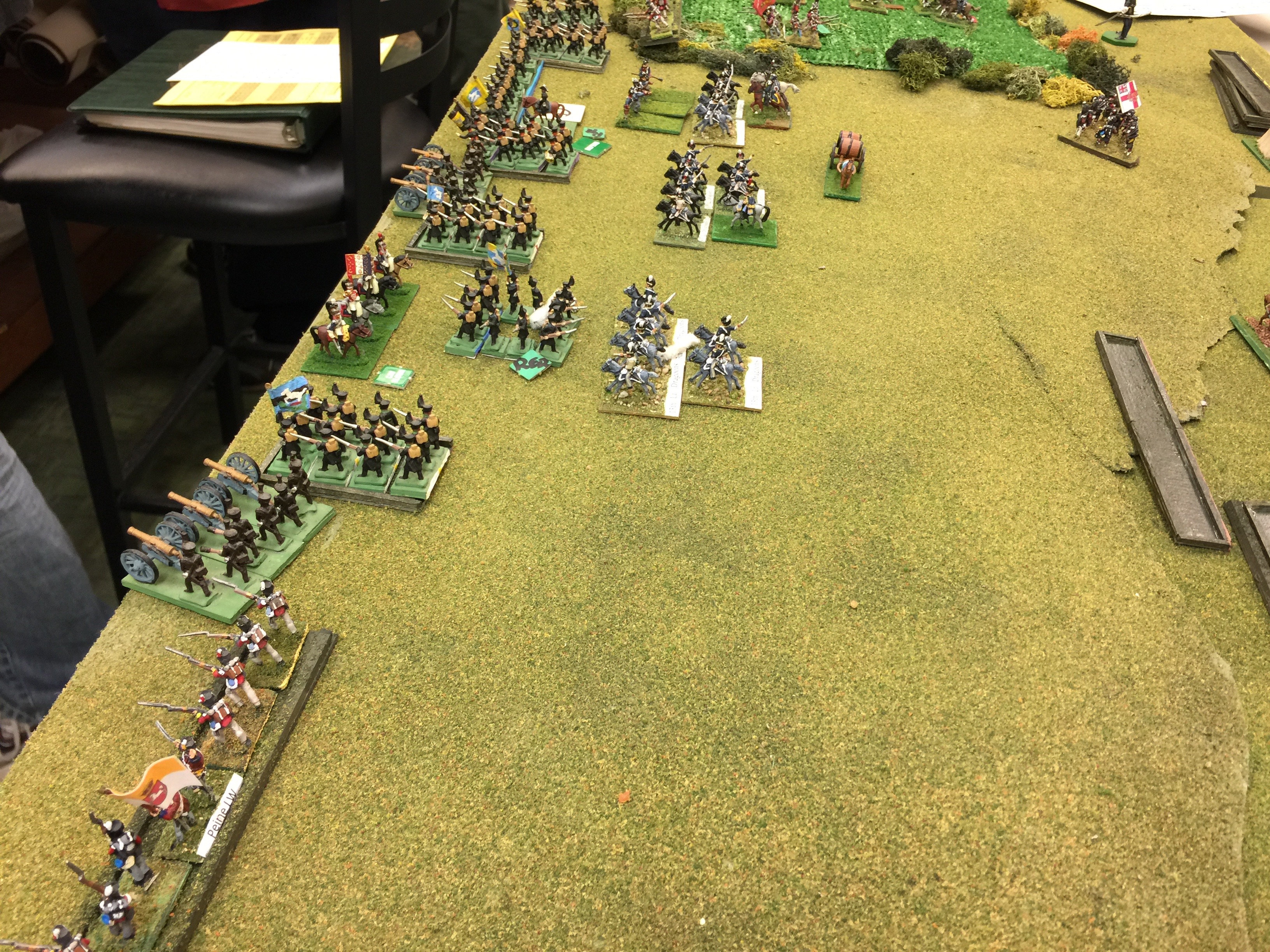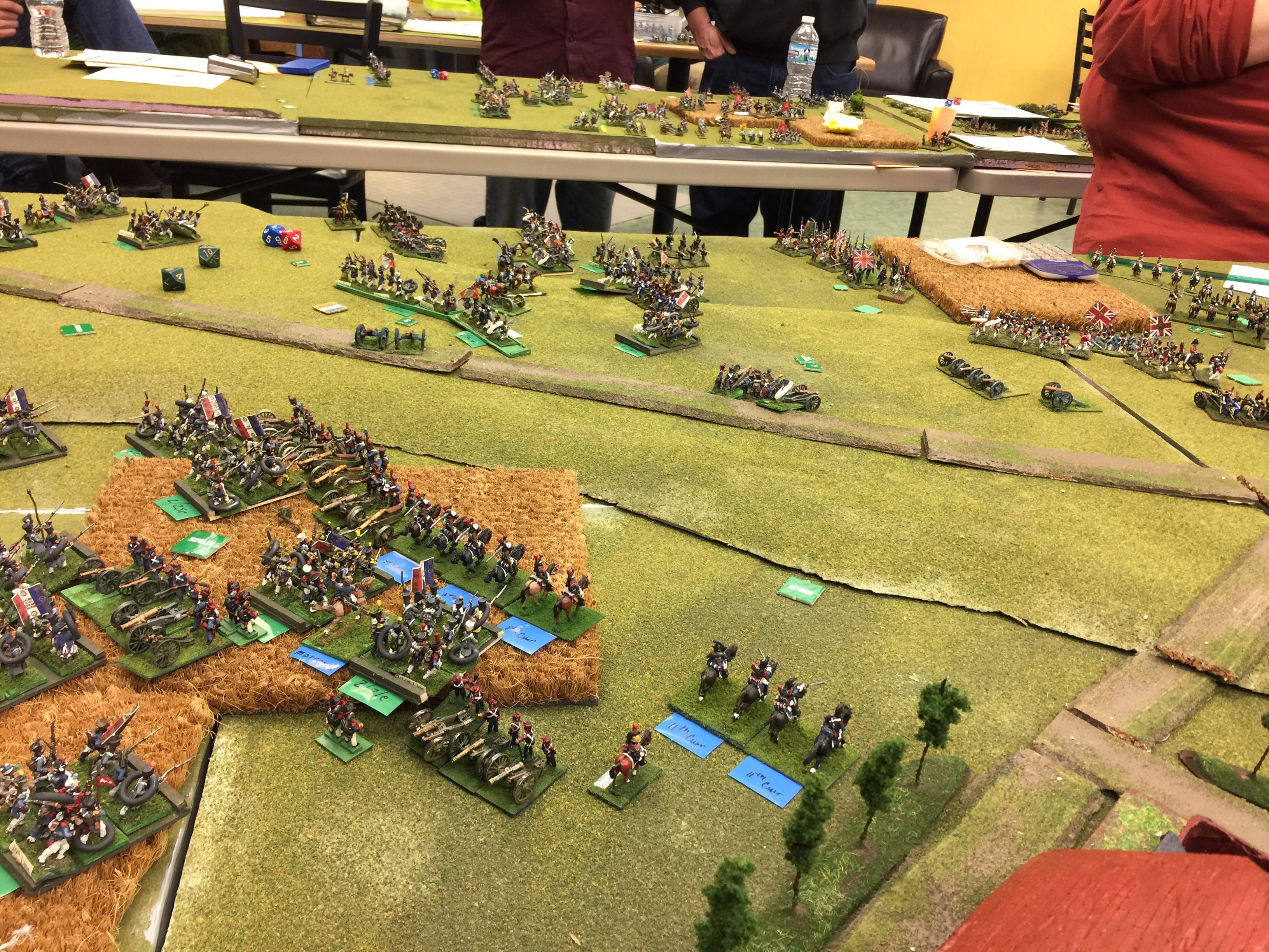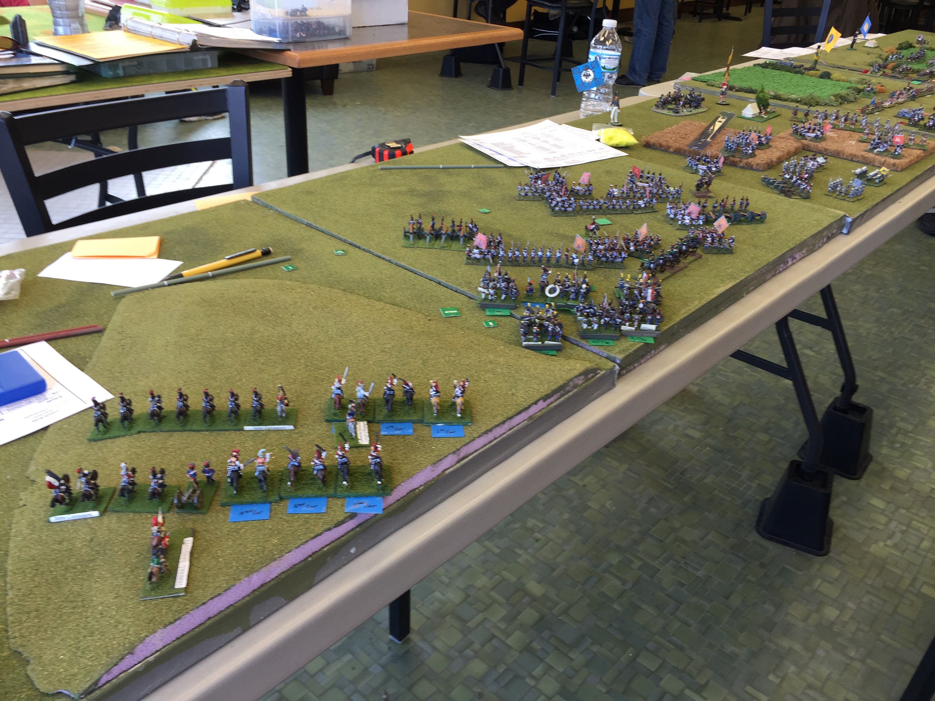 Here is the “back” table. This was the table behind the initial French line. Likewise there was a similar one behind the Brit line. The last thing we did was to deploy our holdings for those things that would start on table. In my case, I was running the French IV Reserve Cav. I’d start behind the II Corps and more or less screen the flank and watch the rear just so there wasn’t any Prussian surprises.