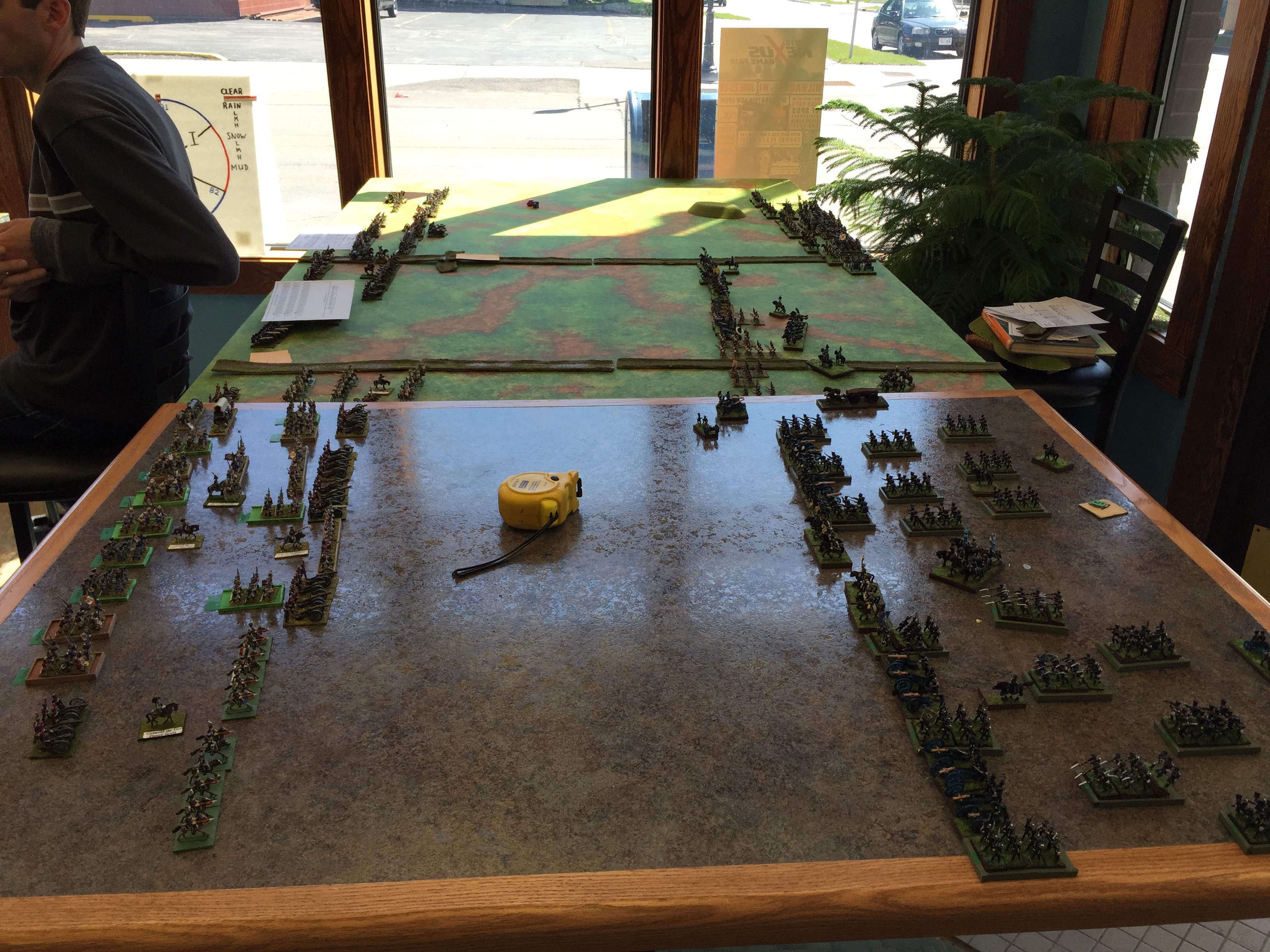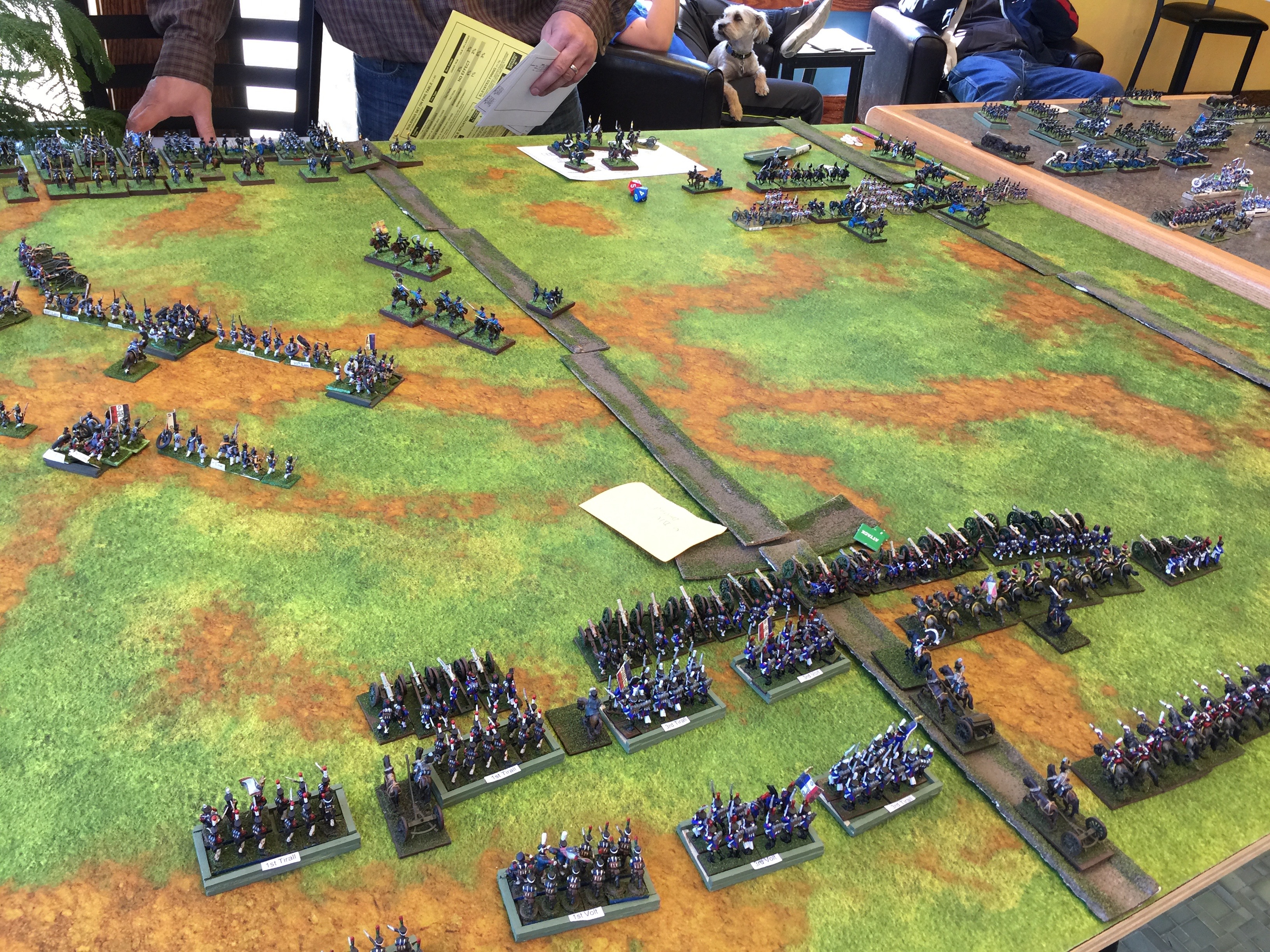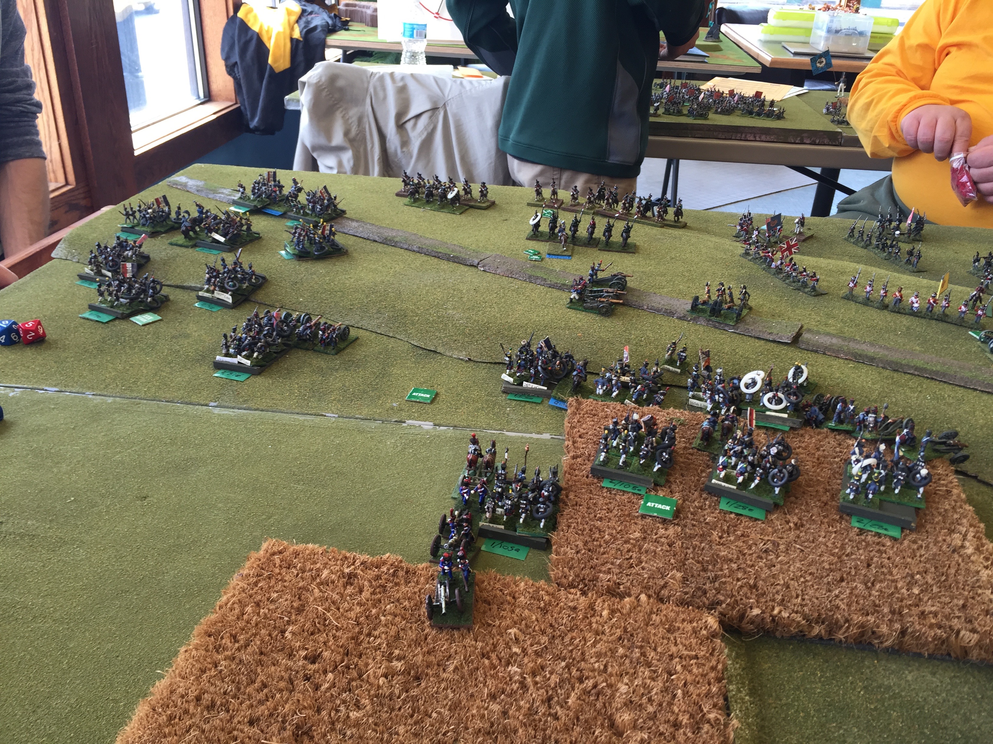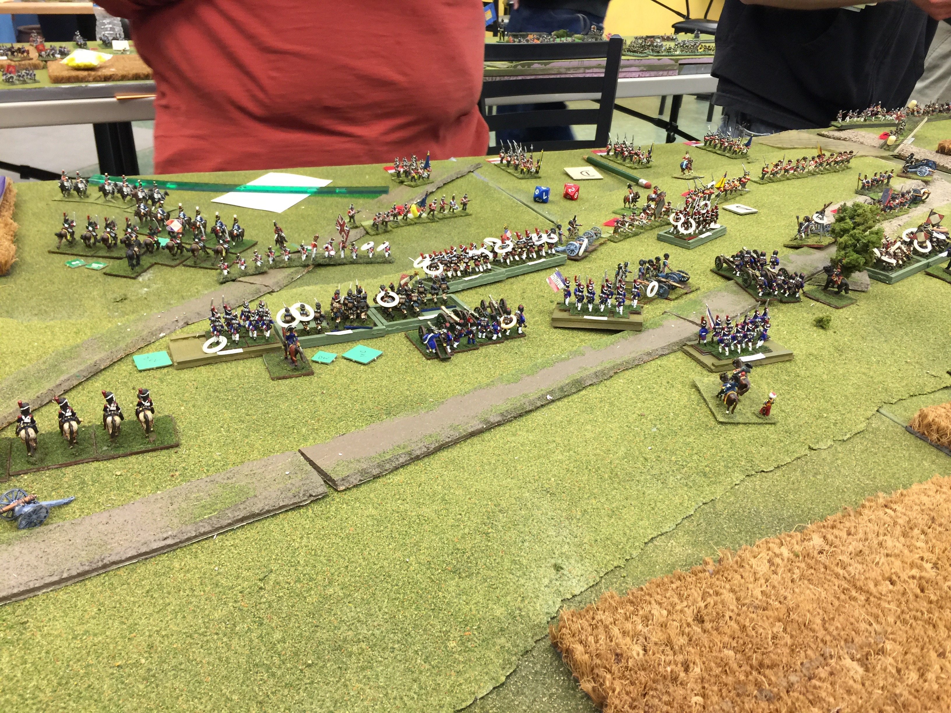 Here is the “back” table. This was the table behind the initial French line. Likewise there was a similar one behind the Brit line. The last thing we did was to deploy our holdings for those things that would start on table. In my case, I was running the French IV Reserve Cav. I’d start behind the II Corps and more or less screen the flank and watch the rear just so there wasn’t any Prussian surprises.