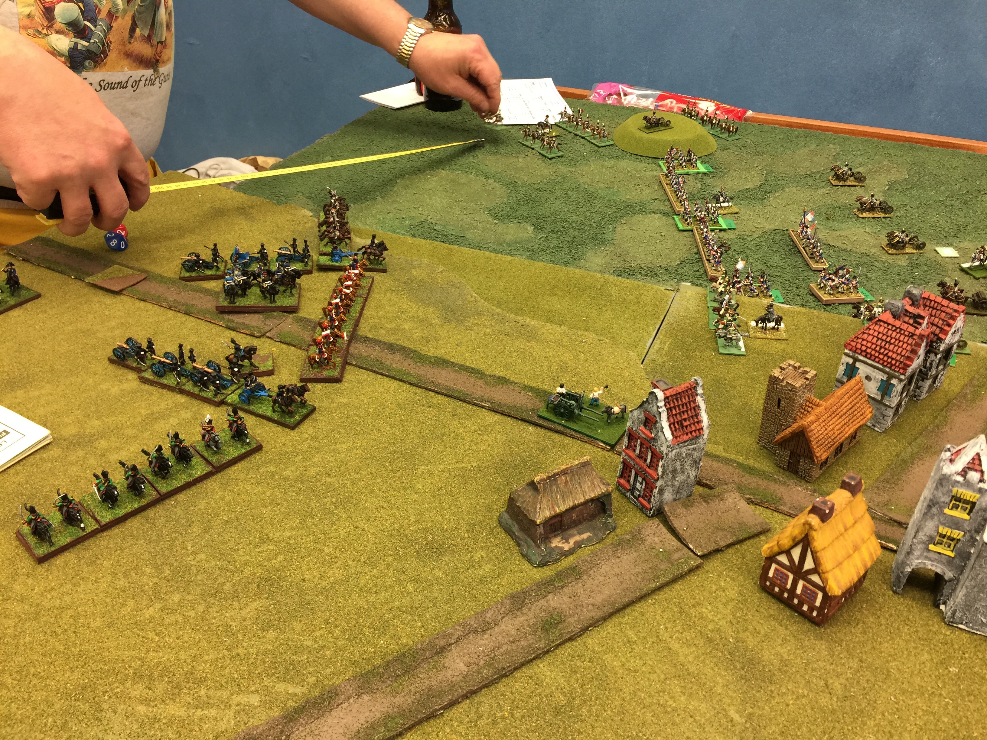 From what we could spy off in the distance, Wellington was probably in the middle. Brit cav was no were to be seen. We didn’t see the Dutch/Belgians, the Hannovarians nor the Brunswickers on the main battle line. Indeed the poor troops were all behind the main battle line which meant we would have a tougher time ahead to punch a hole through.
