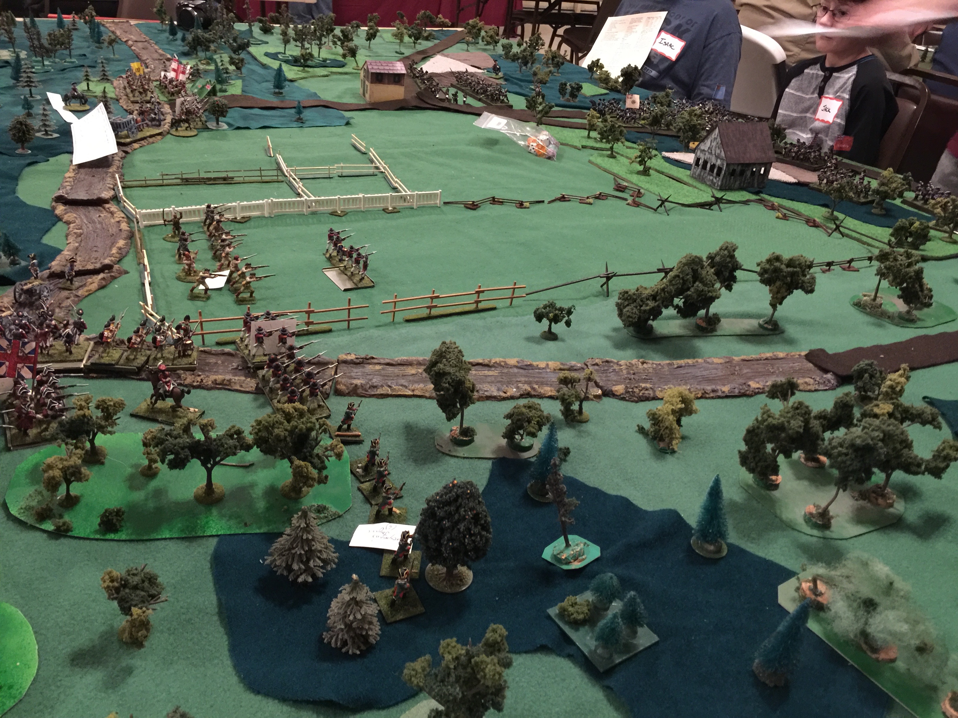 Game 3 I played against Ken on the Dutch table with Encounter. It featured a fairly open terrain and 3 bridges across a canal. This was a game that I just didn’t have a clue how to work the terrain much less deal with Ken’s very impressive force.