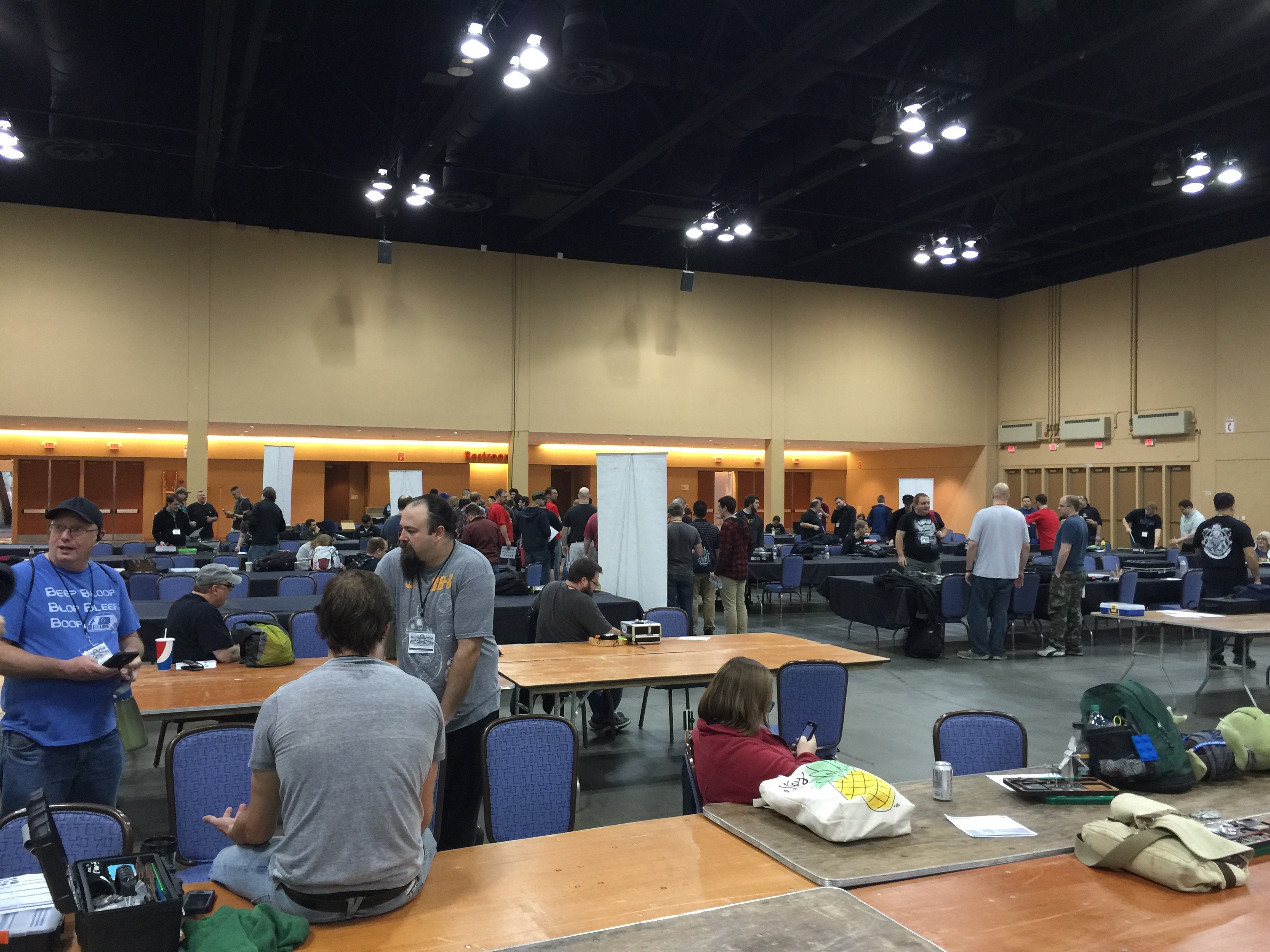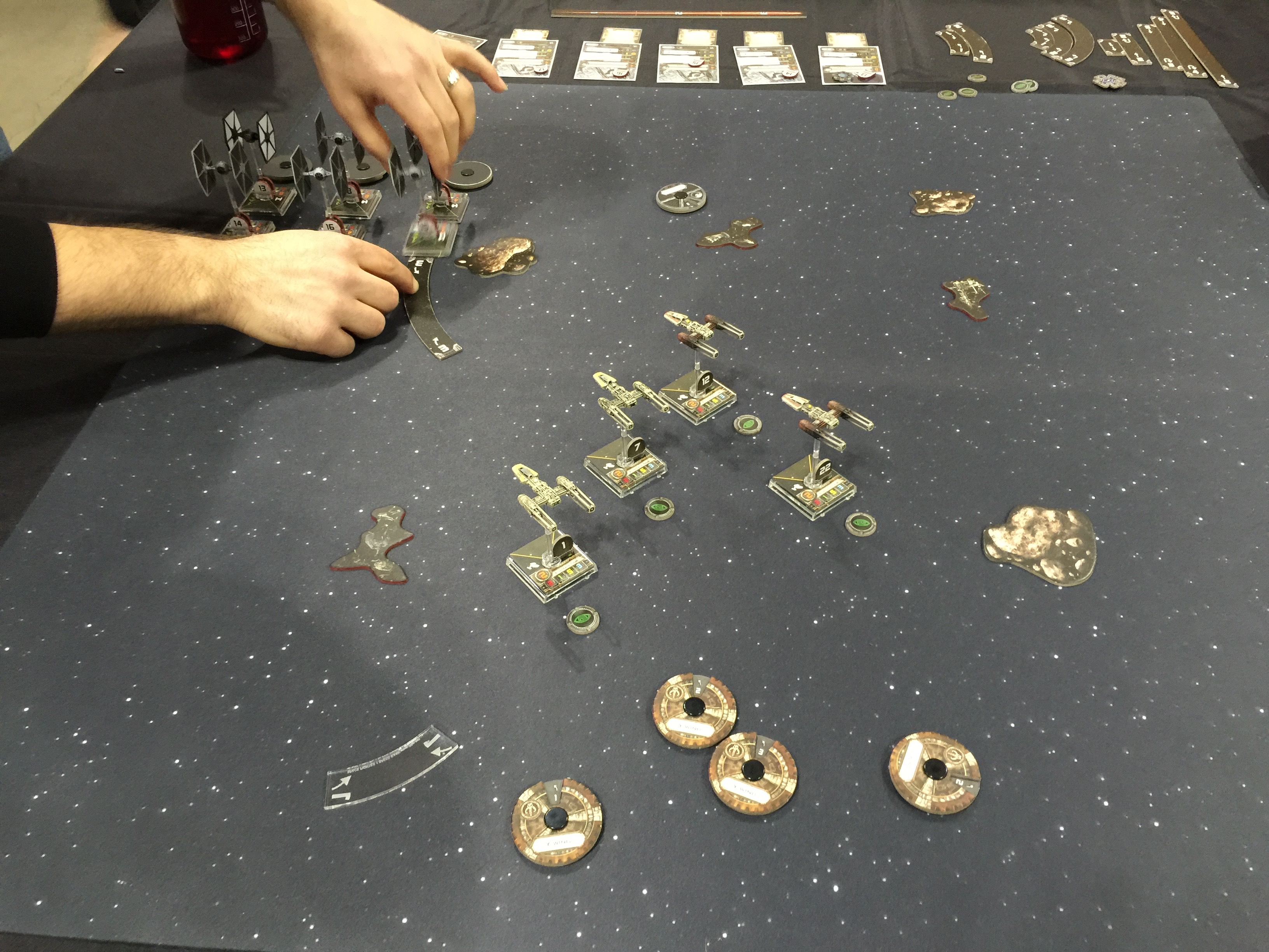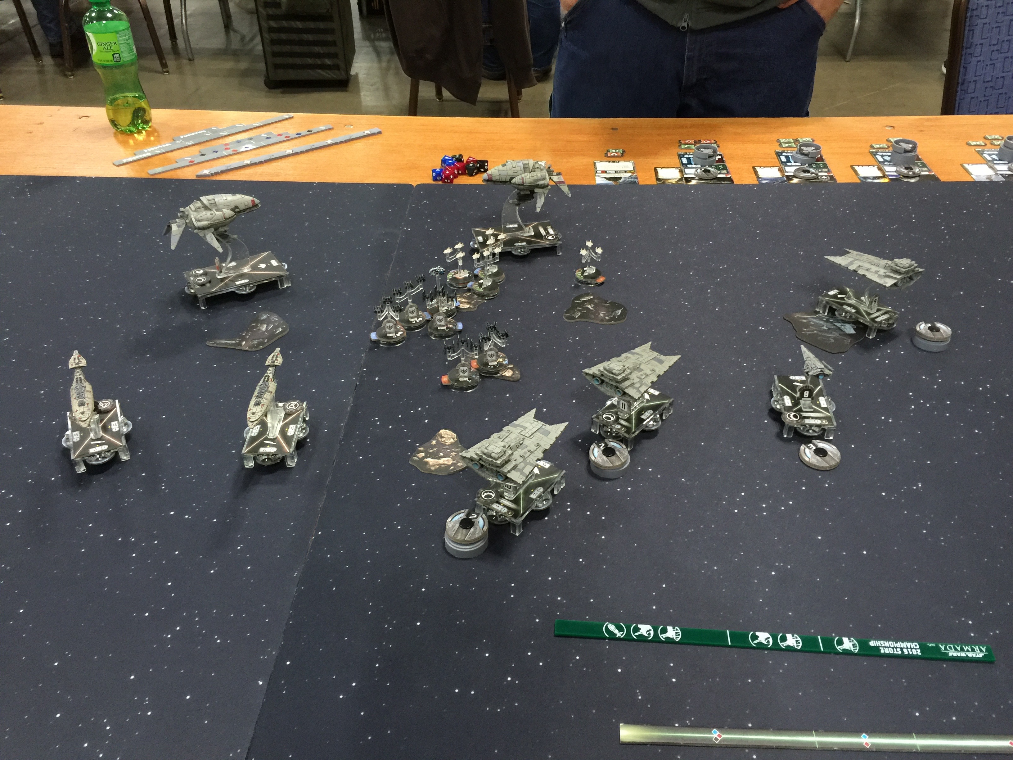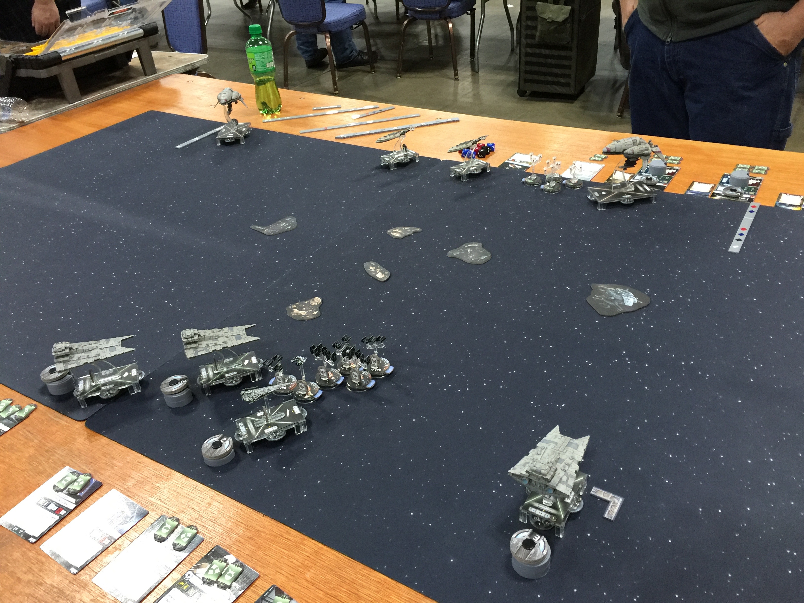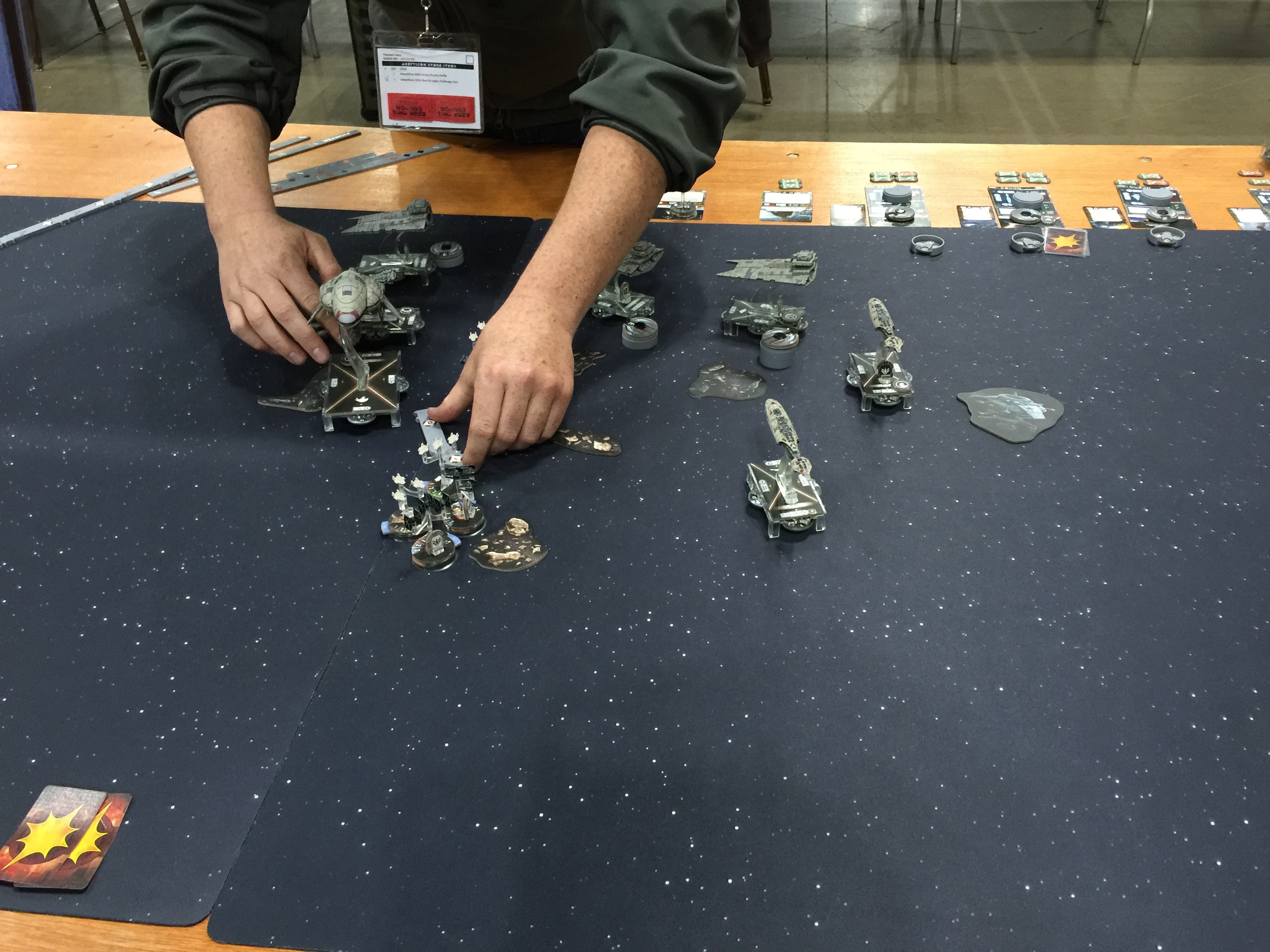 Thursday started with Ian playing in the Hoth X-Wing tournament and I played in the Armada tournament. The Schaumburg convention center is pretty nice and all the FFG events were pretty much in the same place. The tables were umm … pretty crappy so for 3×3 and 3×6 surfaces there was a very noticeable dip where the two tables joined together that didn’t match. Players just had to make do. Otherwise lots of space and elbow room to setup and keep your force.