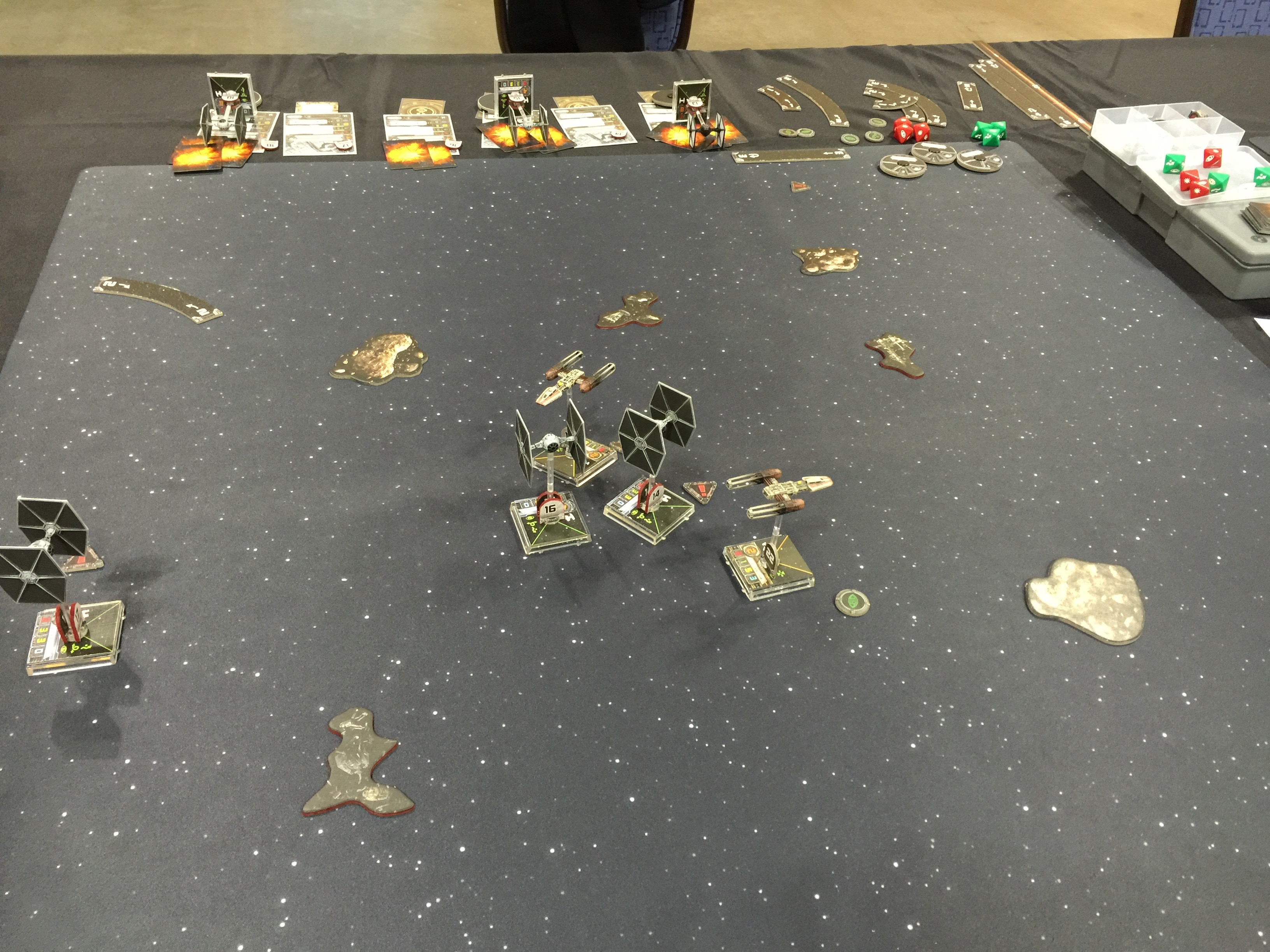 I first played against a sort of traditional Sontir Fel list with Omega Ace and another Imperial Ace. I won that one handily while only losing a single Y-Wing. The fellow I played against was a kindred spirit and former Napoleonic war gamer. Sadly in his area no one to play against.