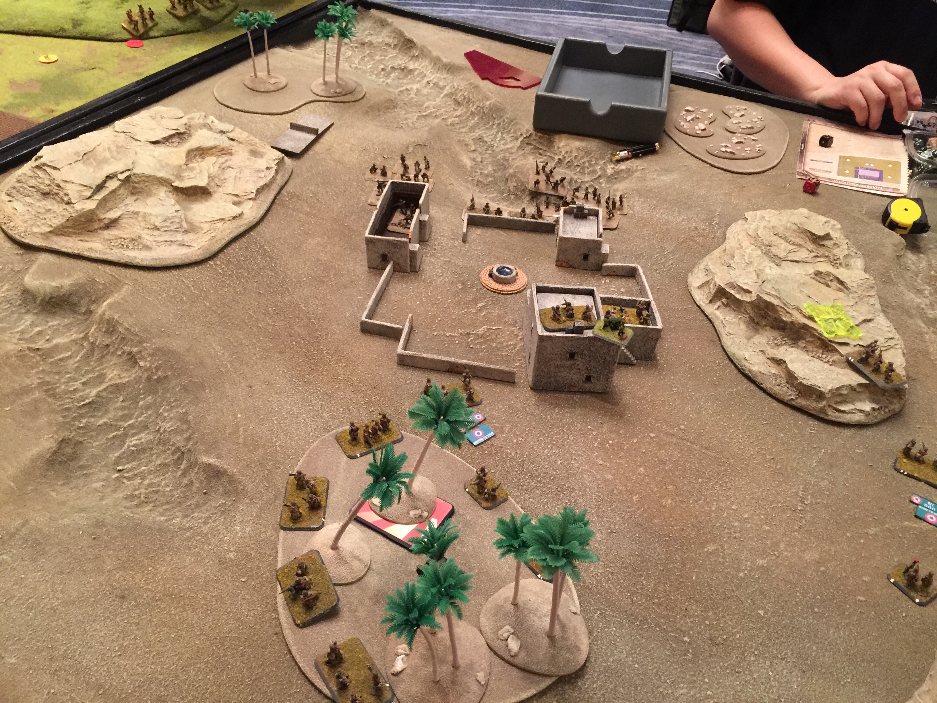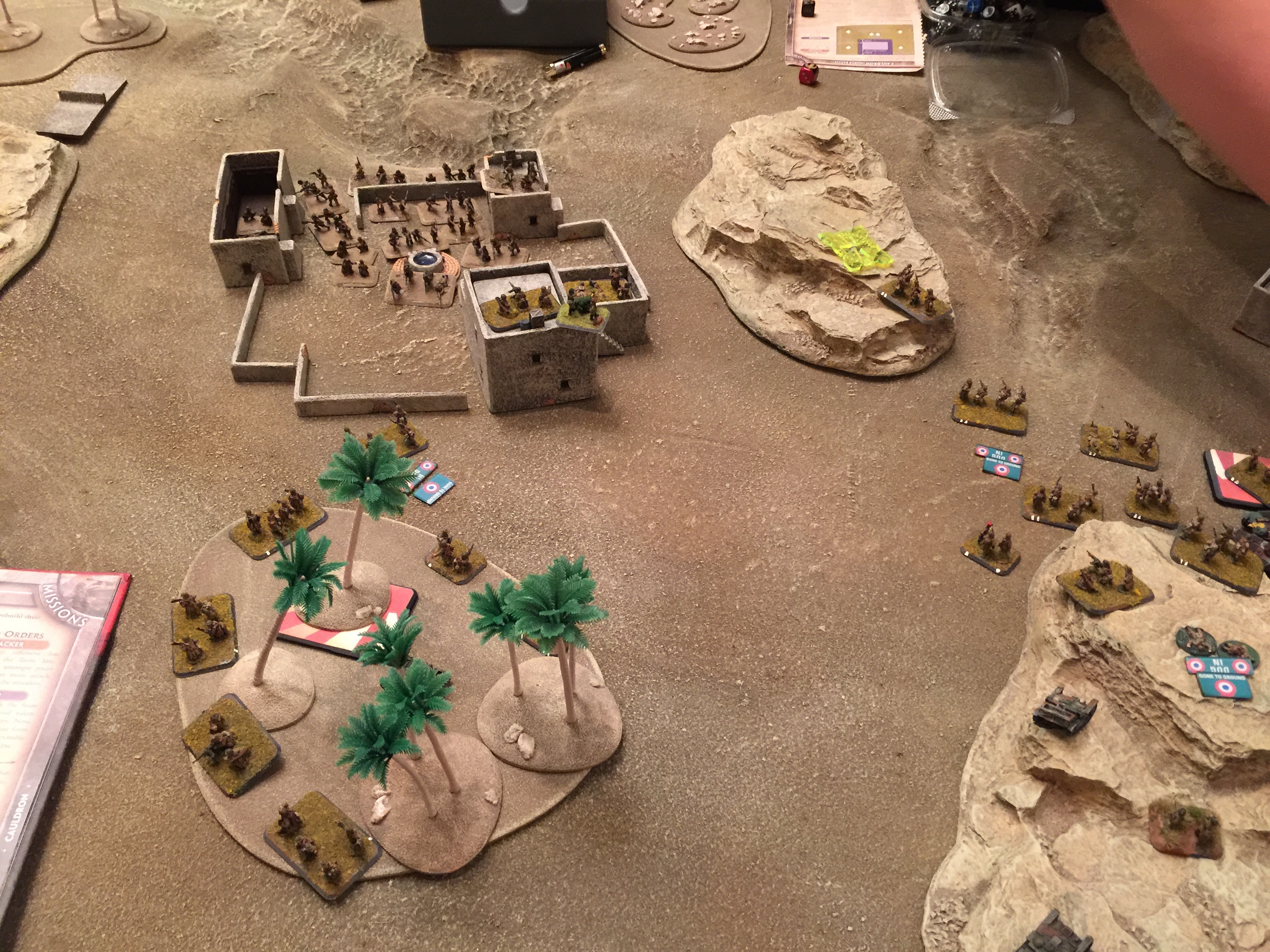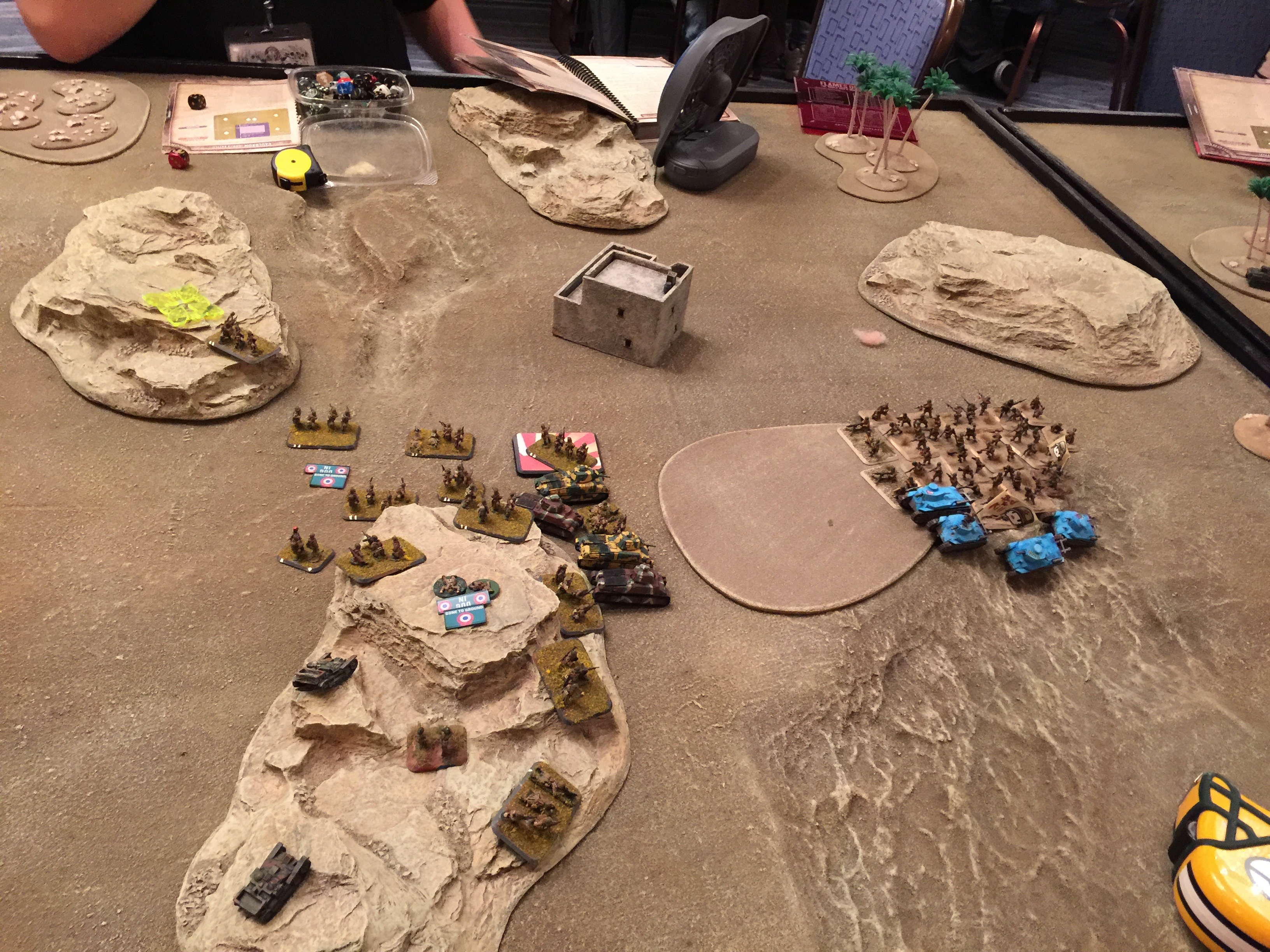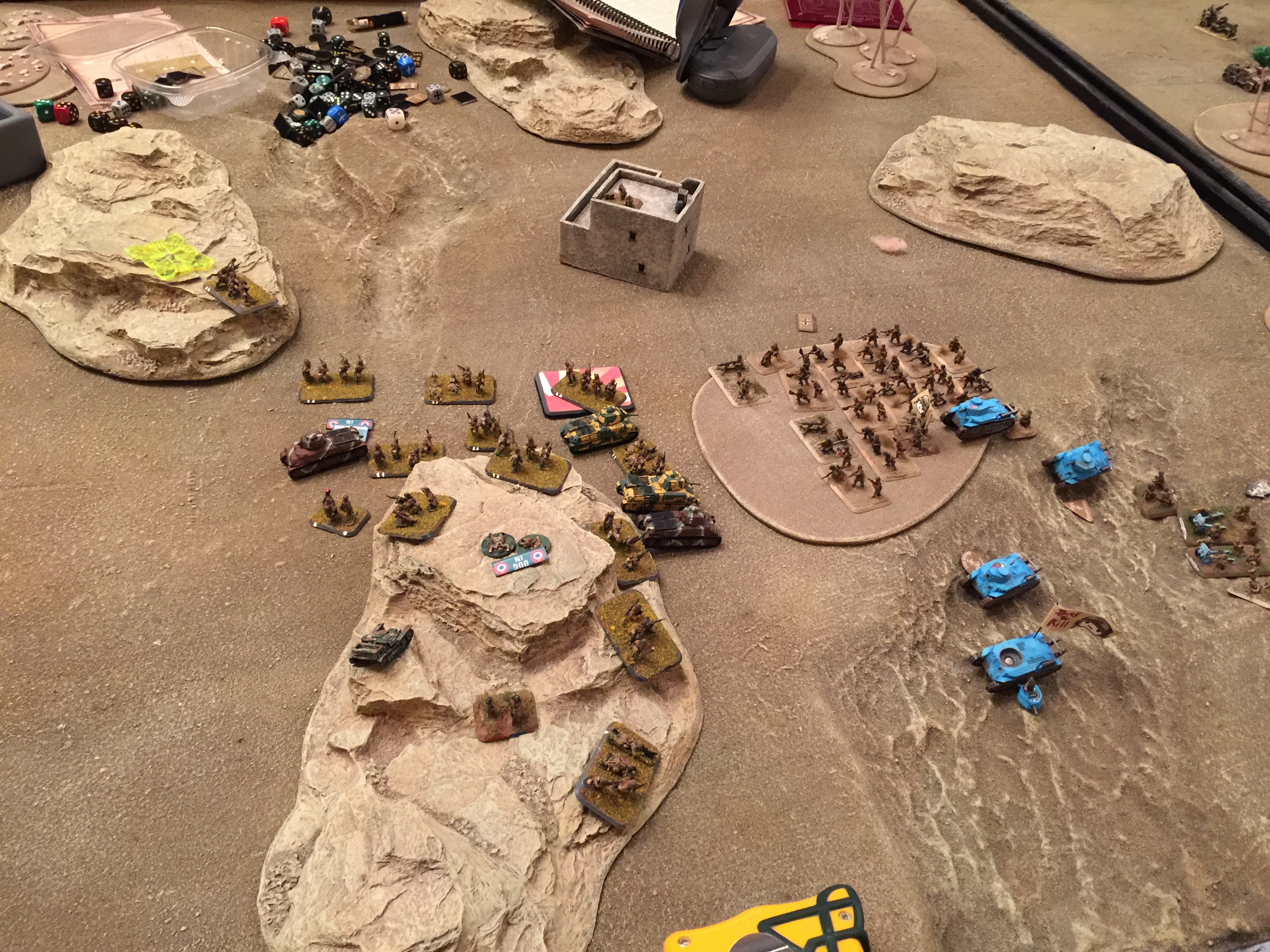 I only took one picture of the entire game. I was the attacker, I think the mission was surrounded… basically the defender is in the middle of the table and the attacker gets to deploy on both sides. I put as much as I could on one side and put my Laffys on the other knowing full well that their lack of HE (and targets) meant this was not their fight.