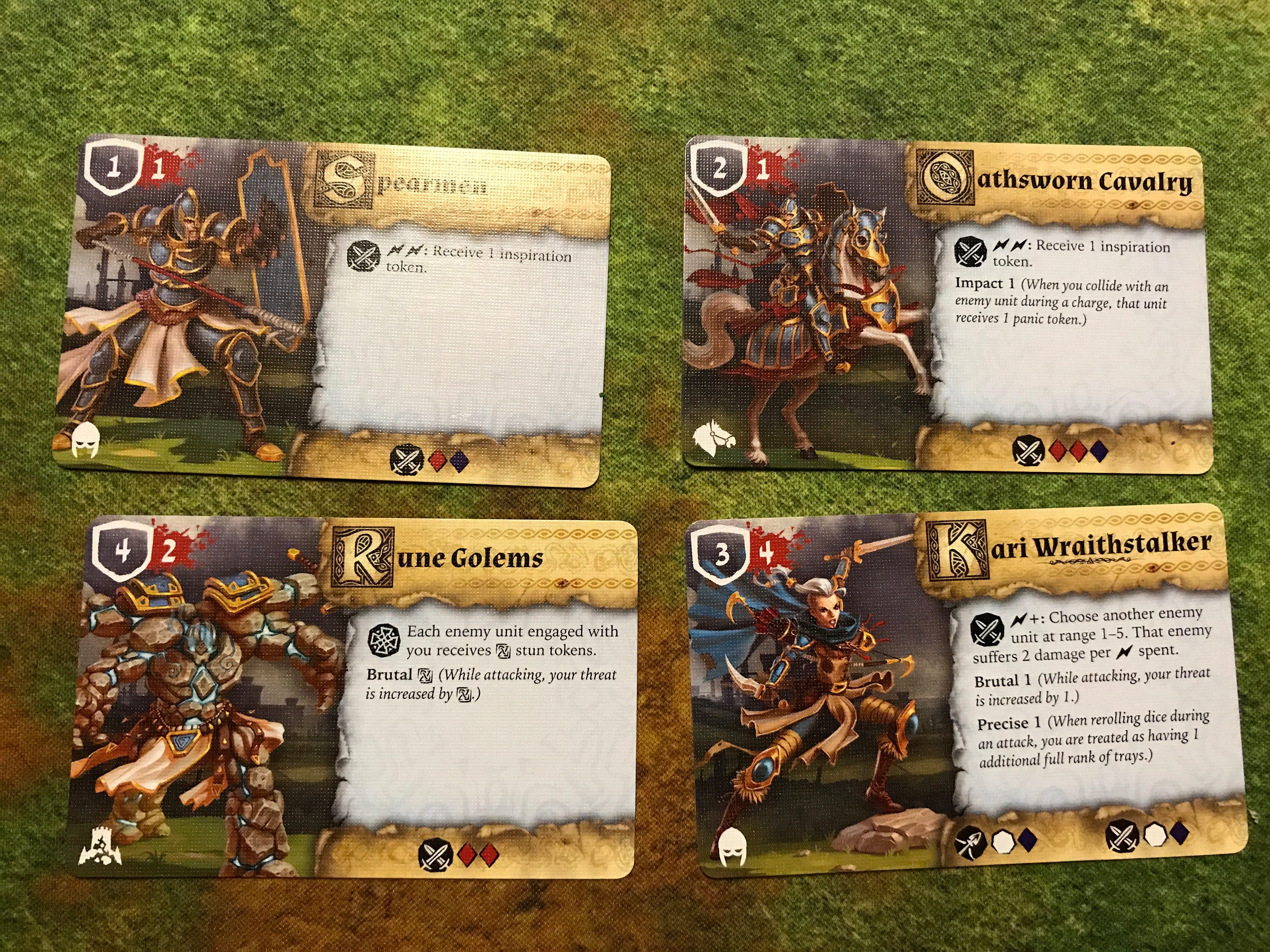 On the most basic level the Spearman the 1 shield, 1 wound basic infantry. The double surge ability giving them an inspiration boon token is a pleasant ability to help protect them from panic and other bane tokens.