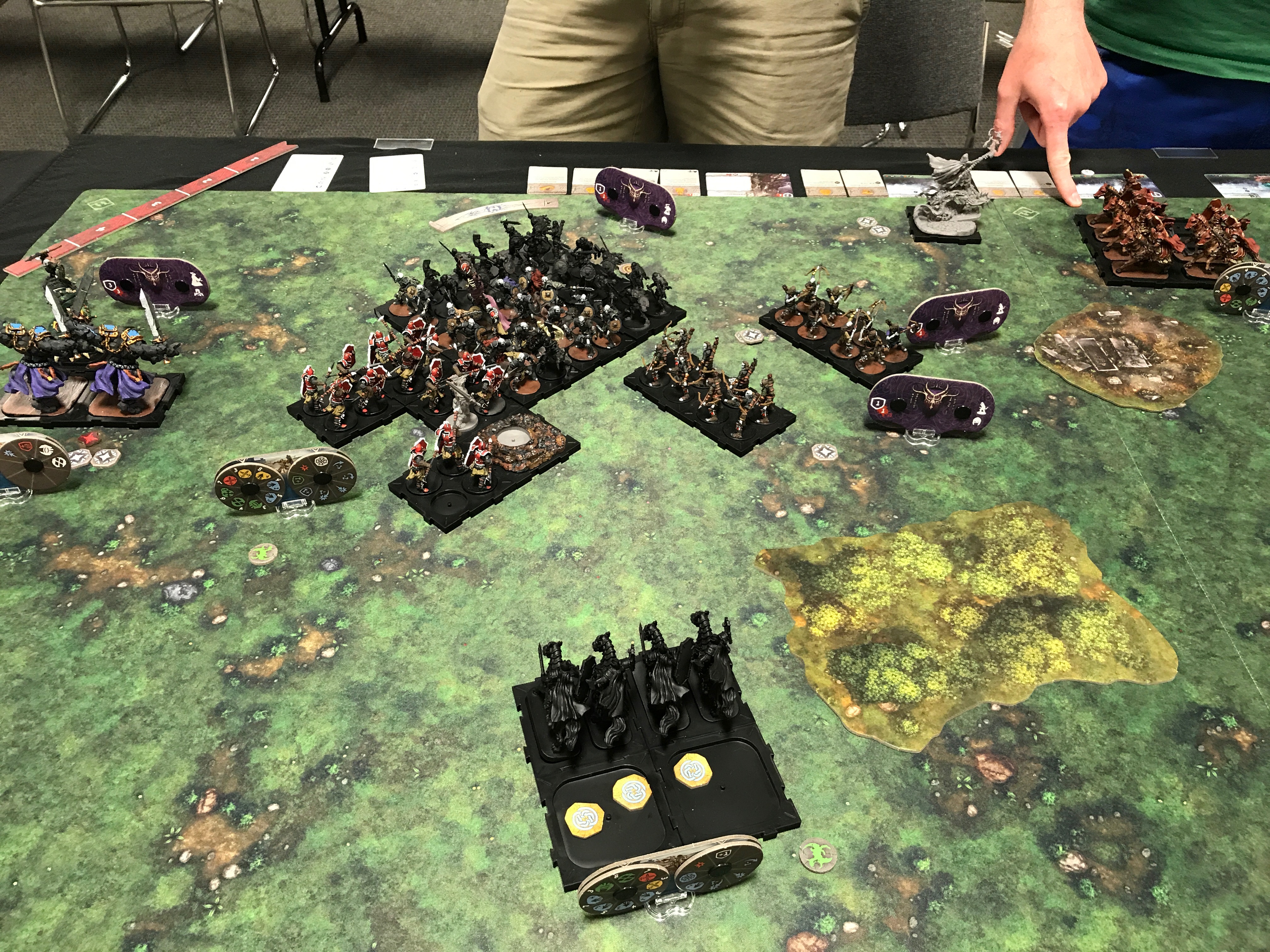 Ian was able to drop a lot of blight tokens on my forces. He primarily went after the spearmen, having 3 tokens on them at one point. Without the independent version of Hawthorne I didn’t have a great way to get rid of them. As a result I had a round of combat with no dice until the tokens were gone.