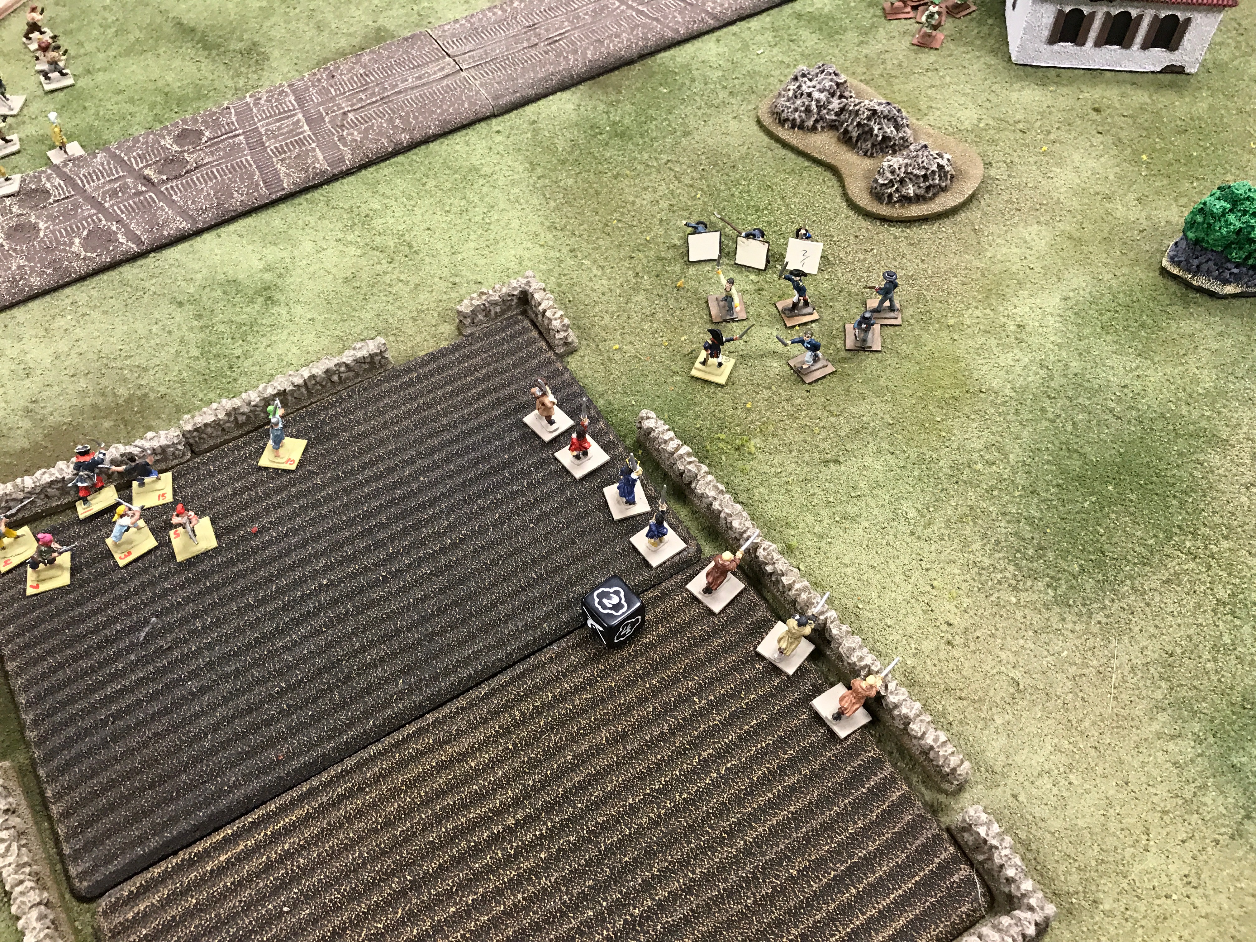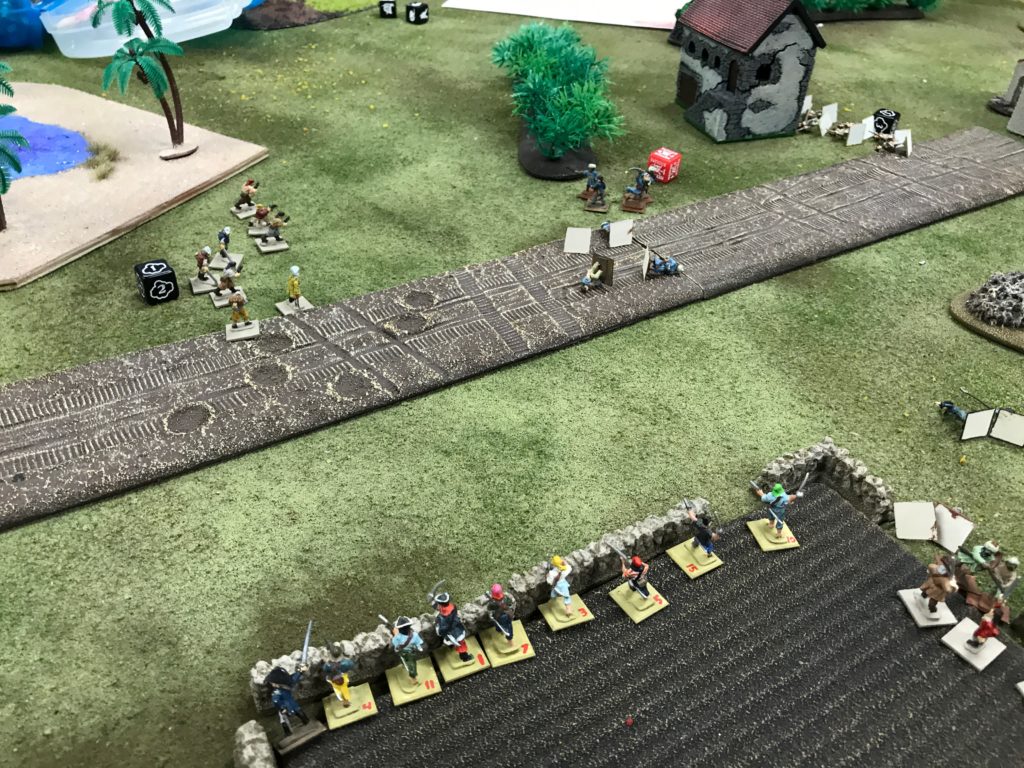 The Flibustiers setup on the wall and Ian pulled in a unit of Milicianos to get ready for a charge. My volley downed 3 and pushed them back.