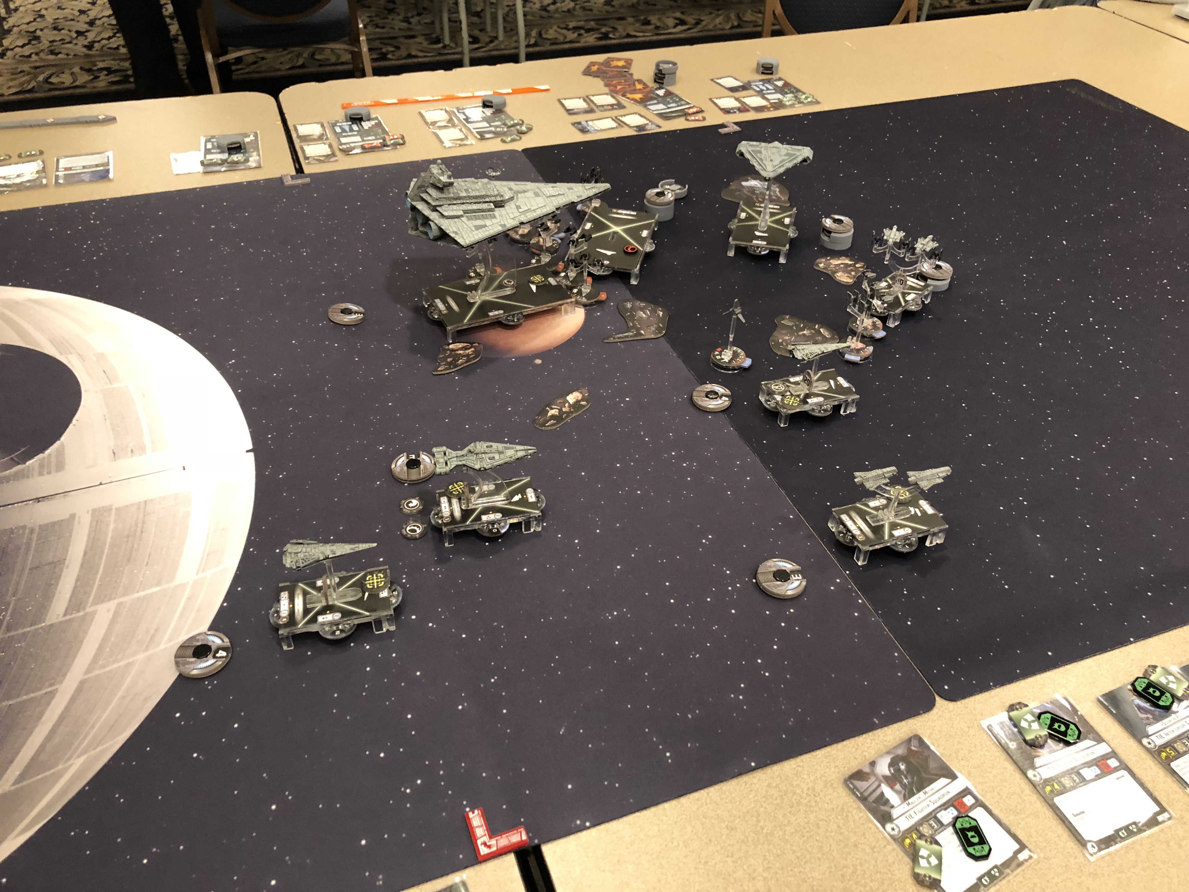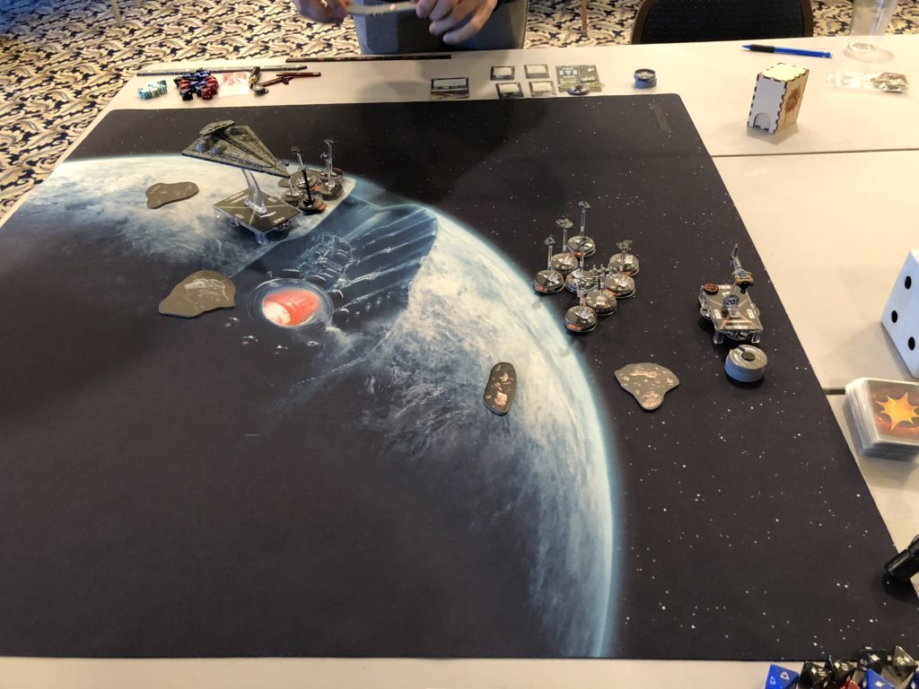 I decided to sort of turtle up and gear up for an alpha strike with my squadrons. We were playing Fighter Ambush which inspired me to not fling my squadrons forward as part of setup but instead stick back in activation range since I didn’t have a shuttle.