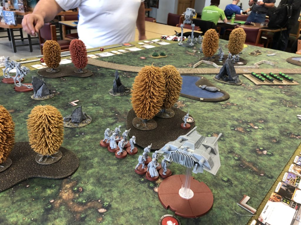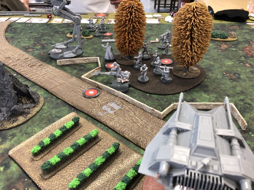 I put my two AR-RTs on the left flank with a squad of infantry. I figured they could cover the area if the imperials pushed from that side. I put my infantry and Luke pretty much in the center. I figured I’d try and hold on the left and push on the right.
